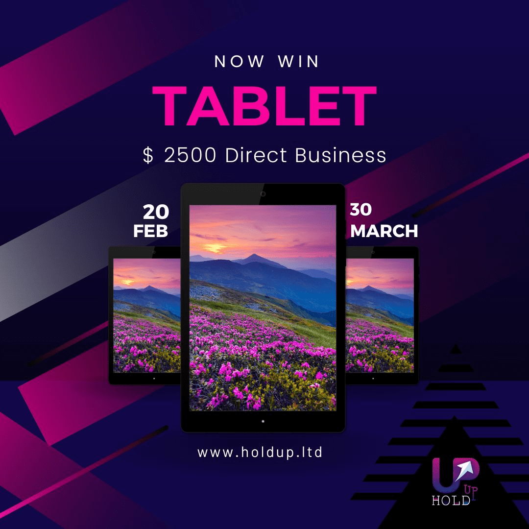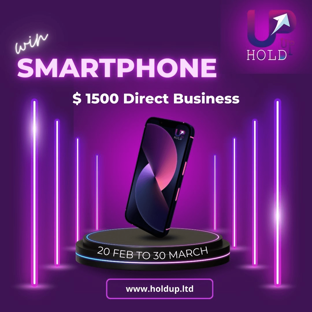 Beginnen Sie mit einer Investition (100 $) bei holdupltd, nehmen Sie am Partnerprogramm teil und gewinnen Sie ein Smartphone, ein Tablet und eine Auslandsreise.