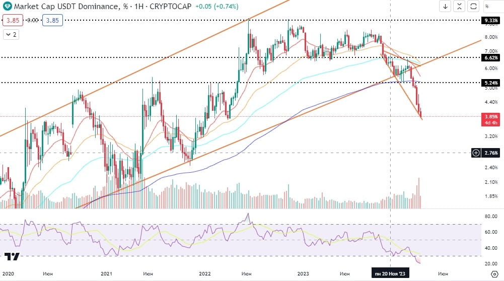 Dank des $USDT.D-Charts konnte ich den Trend richtig erkennen und rechtzeitig eingeben