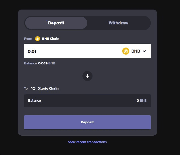 2. Schritt 2, Cross-Chain-BNB zum Xterio-Netzwerk, Cross-Chain-URL