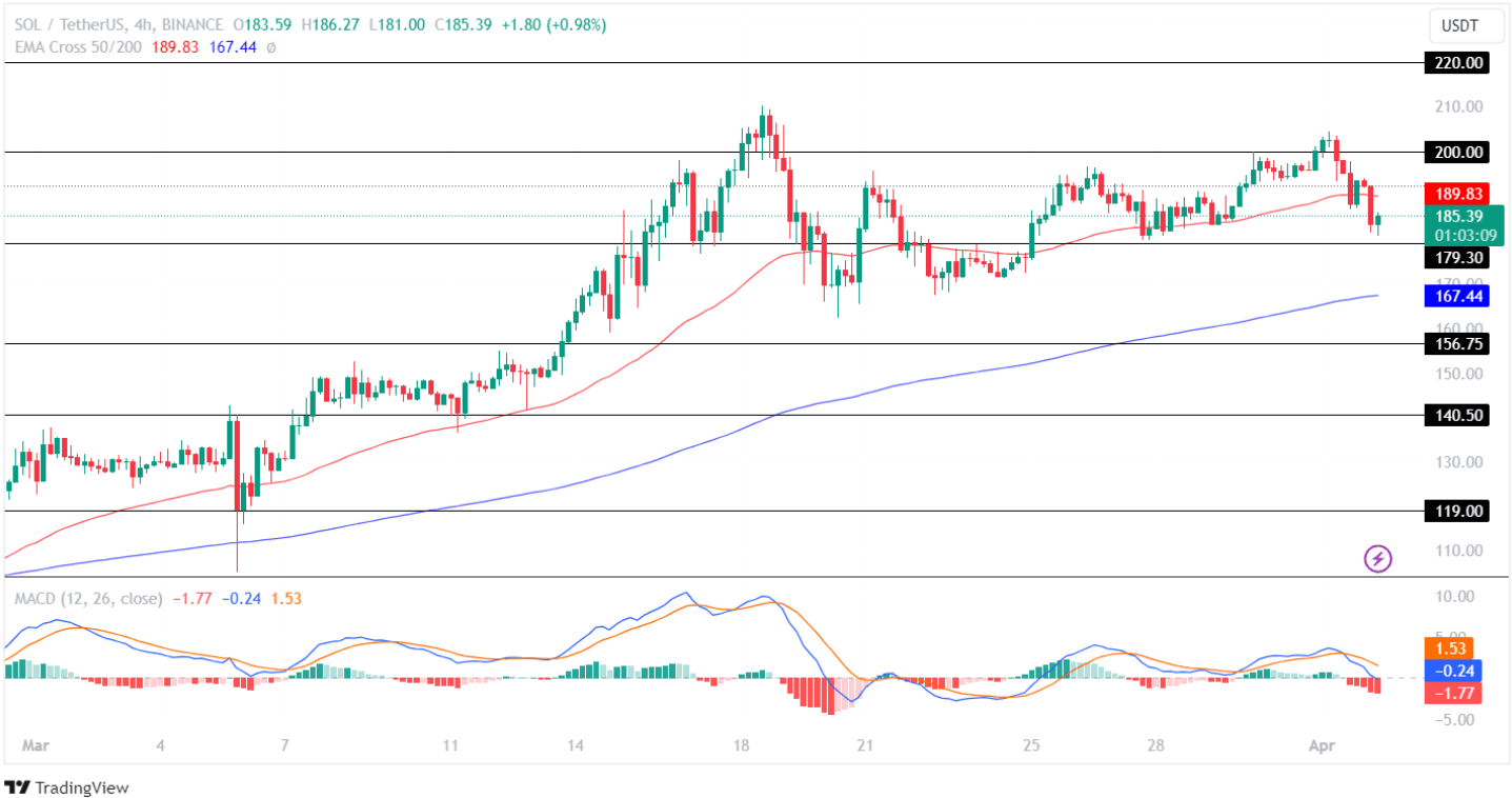 Seitdem hat der Markt an Dynamik verloren und der Solana-Token hat eine Korrektur von rund 19 % erlebt. Seitdem bewegt sich der SOL-Token-Preis in einer geschlossenen Spanne zwischen 179,30 und 200 US-Dollar und konnte mehrfach seine Widerstandsniveaus nicht durchbrechen.