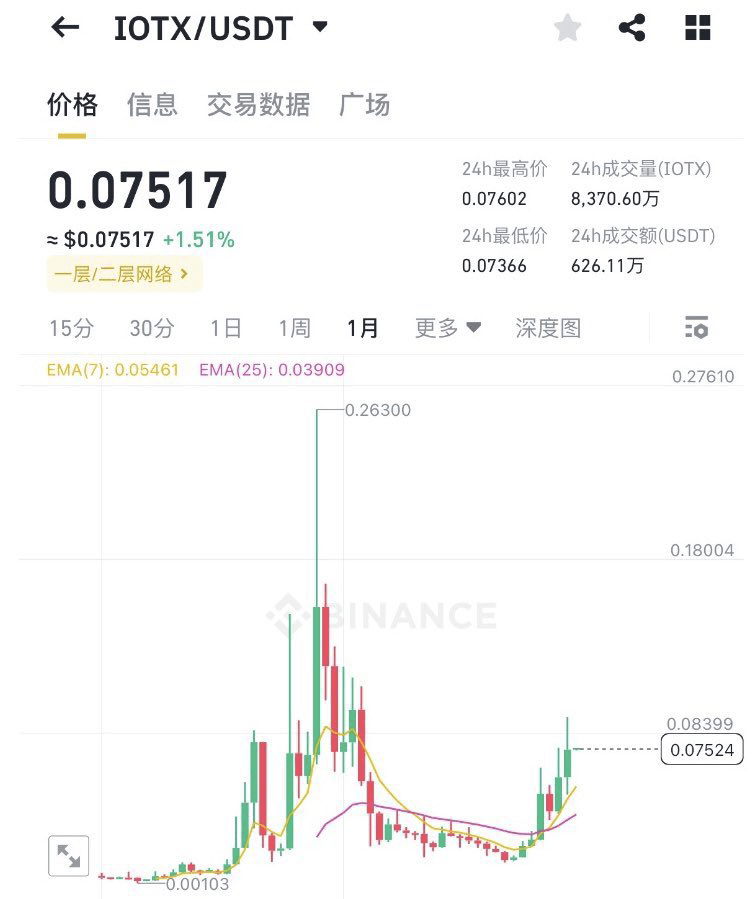 @$IOTX ist der Marktführer bei DEPIN! Der vollständige Name lautet „Internet of Things (IoT)-Netzwerkinfrastruktur“. Das Unternehmen wurde 2017 gegründet, sein aktueller Echtzeitpreis beträgt 0,07517 $ und seine Marktkapitalisierung liegt auf Platz 147.