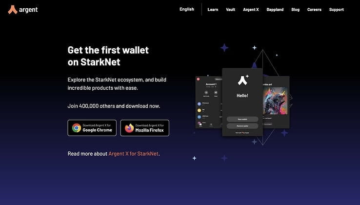 MetaMask unterstützt derzeit das Alpha Mainnet nicht und kann daher nicht in das StarkNet Layer 2-Netzwerk integriert werden. Die einzige Möglichkeit, StarkNet zu nutzen, ist die Argent X-Wallet. Argent Sie können die Browsererweiterung für Argent X bei Google Chrome oder Mozilla Firefox installieren. Anschließend können Sie mit Argent X Geld senden und empfangen, neue NFTs entdecken und tauschen.