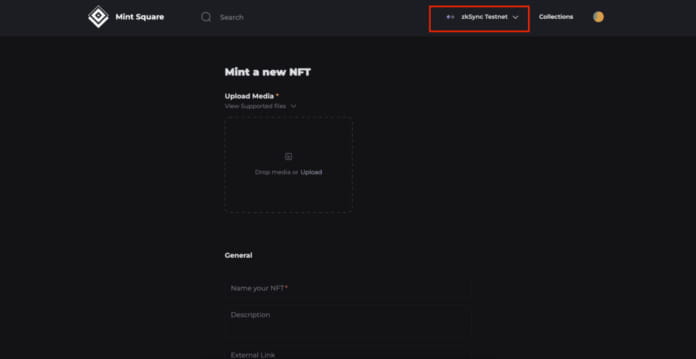 MintSquare ist eine NFT-Plattform, die sowohl in zkSync als auch in StarkNet integriert ist. Sie können ein NFT prägen, indem Sie die unterstützten Medien eines beliebigen Bildes hochladen. Vergessen Sie nicht, das Netzwerk auf StarkNet umzustellen, nicht auf zkSync. Geben Sie ihm einen Namen, einige Attribute und klicken Sie auf Mint. Voilà! Sie haben selbst einen neu geprägten NFT auf StarkNet.