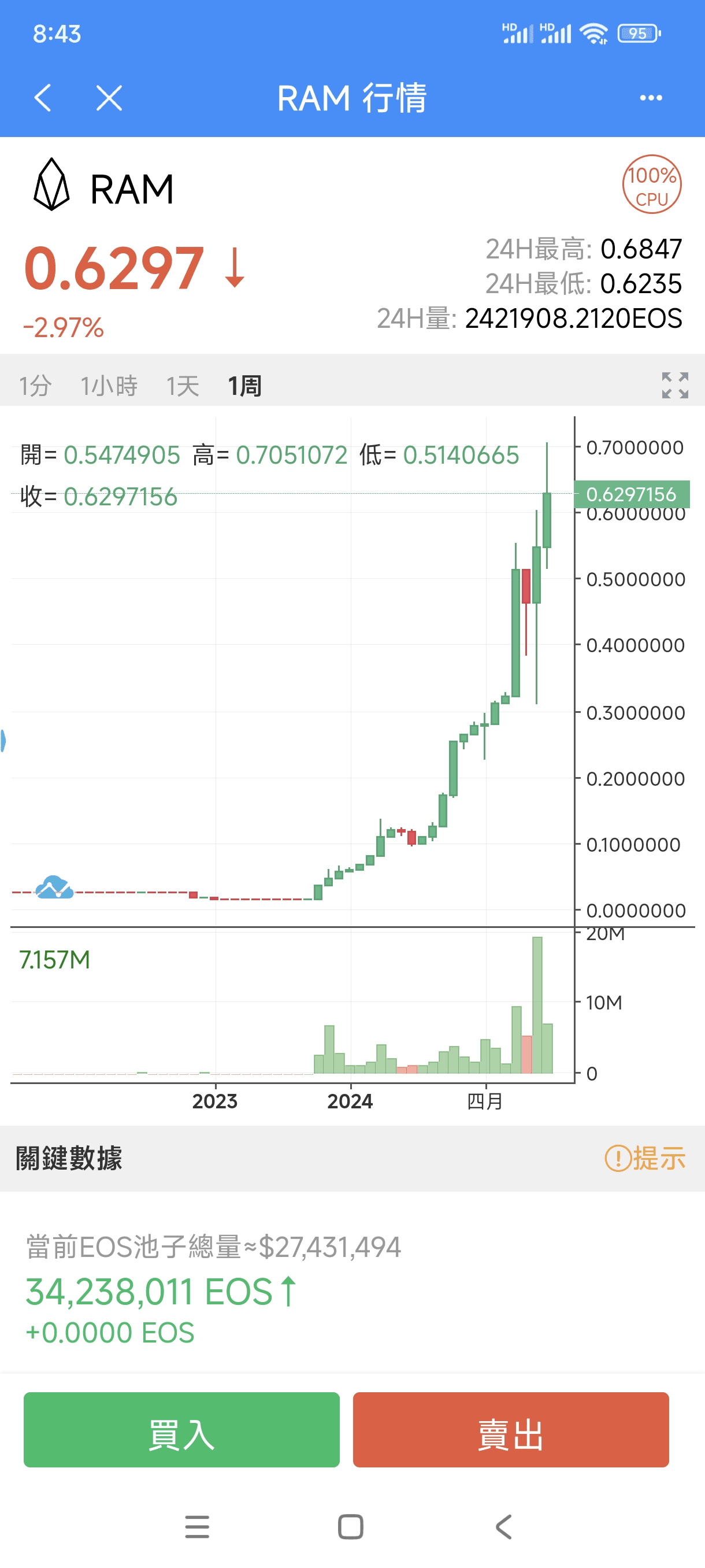 EOS-RAM ist eine begrenzte Ressource und die Gesamtmenge des Systems ist fest und kann nicht erhöht werden. Da dezentrale Anwendungen (dApps) auf der EOS-Plattform zunehmen, steigt auch die Nachfrage nach RAM. Die Knappheit der Ressource bedeutet, dass der RAM-Preis bei steigender Nachfrage erheblich steigen kann, was den Anlegern erhebliche Renditen beschert.