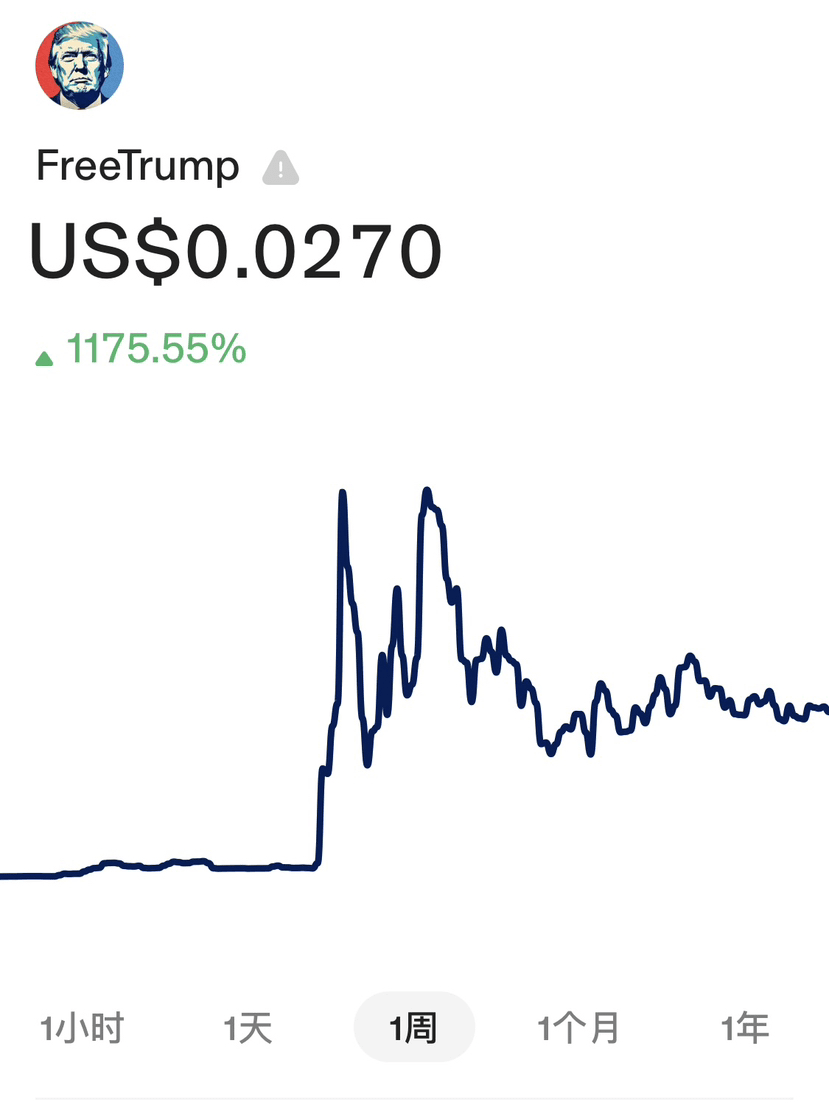 4. FreeTrump, Token-Name: Trump, Listungszeitpunkt: 20240121, aktueller Marktwert: 2,7 Millionen US-Dollar, Anzahl X Follower: 6250, Anstieg in der letzten Woche: 1175 %, Wachstumsraum: 200-fach.