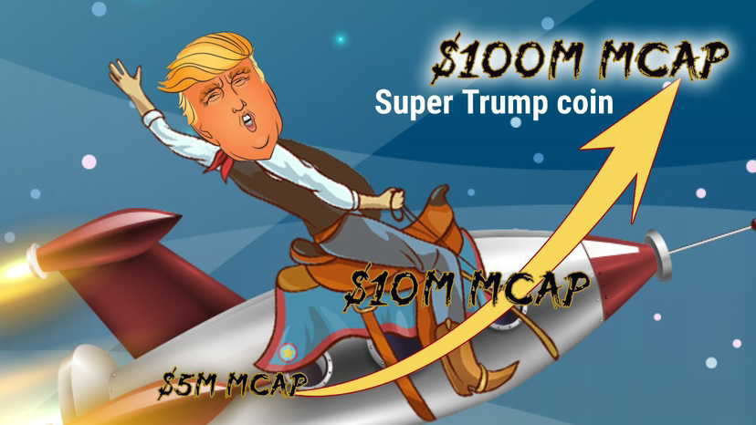 2. Super Trump, Token-Name: STRUMP, Listungszeitpunkt: 202405314, aktueller Marktwert: 60 Millionen US-Dollar, Anzahl X Follower: 1.200, Anstieg in der letzten Woche: 514 %, Wachstumsraum: 50-fach.