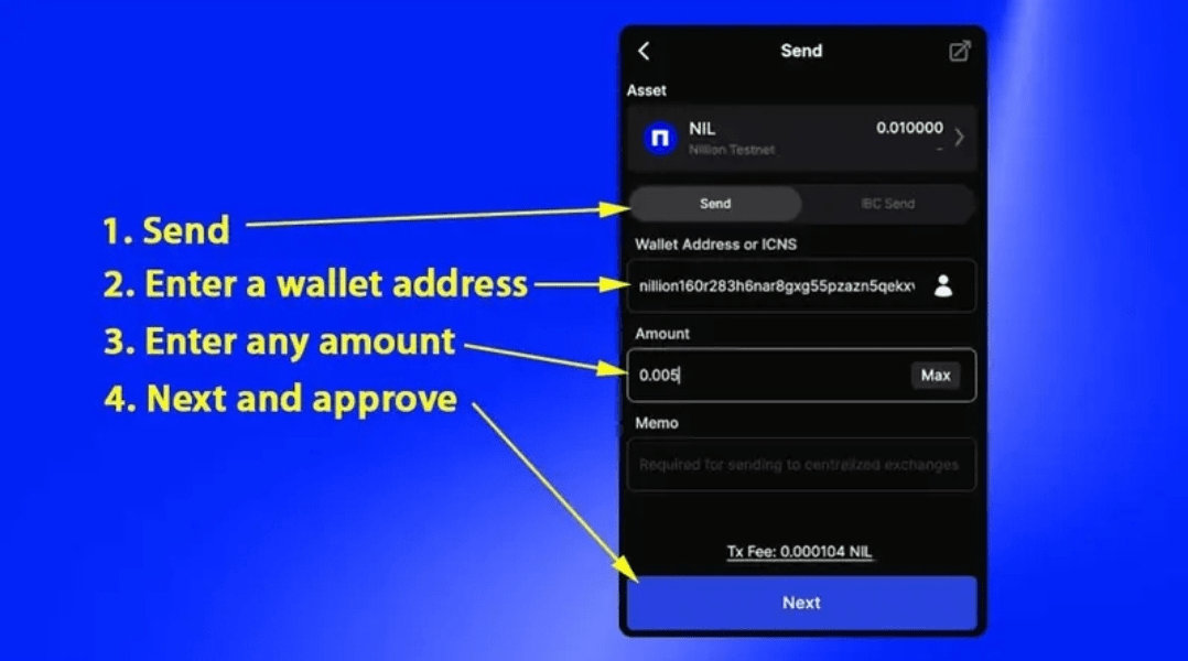5️⃣ Senden Sie NIL-Token: