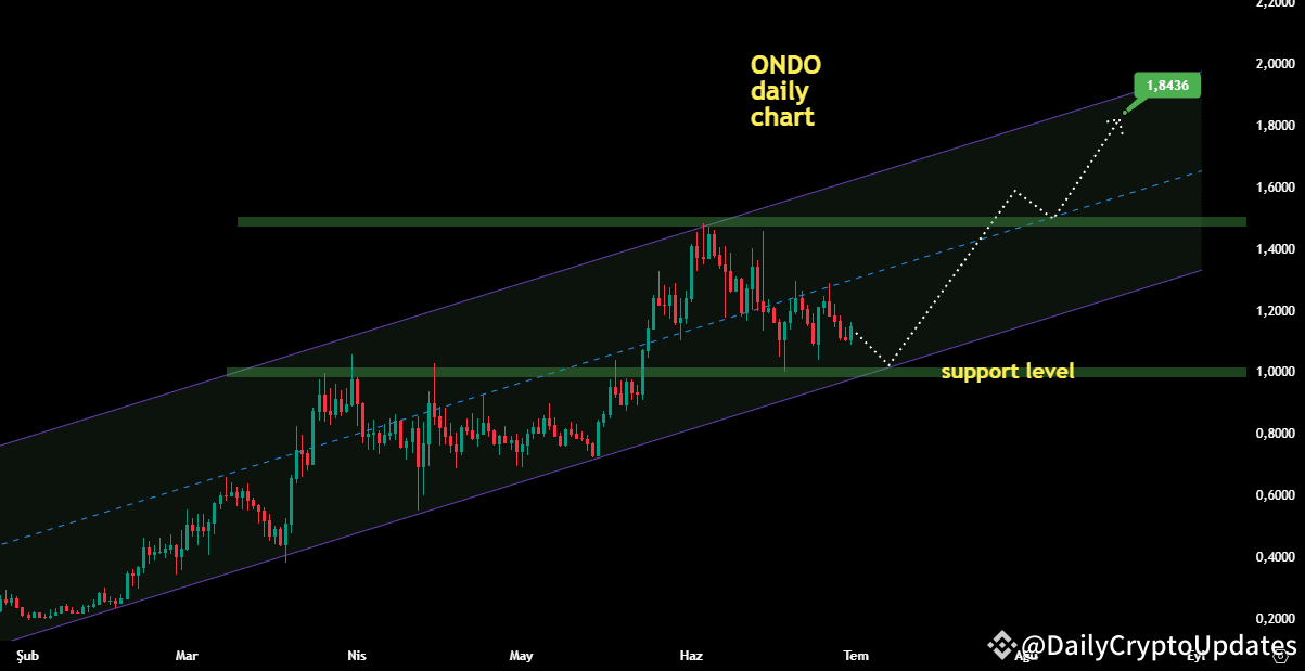 ONDO Token's current chart analysis points towards a potential bullish trend. Traders and investors should monitor the support level around $1.00 closely. A successful bounce from this level could pave the way for a significant upward move towards $1.8436
