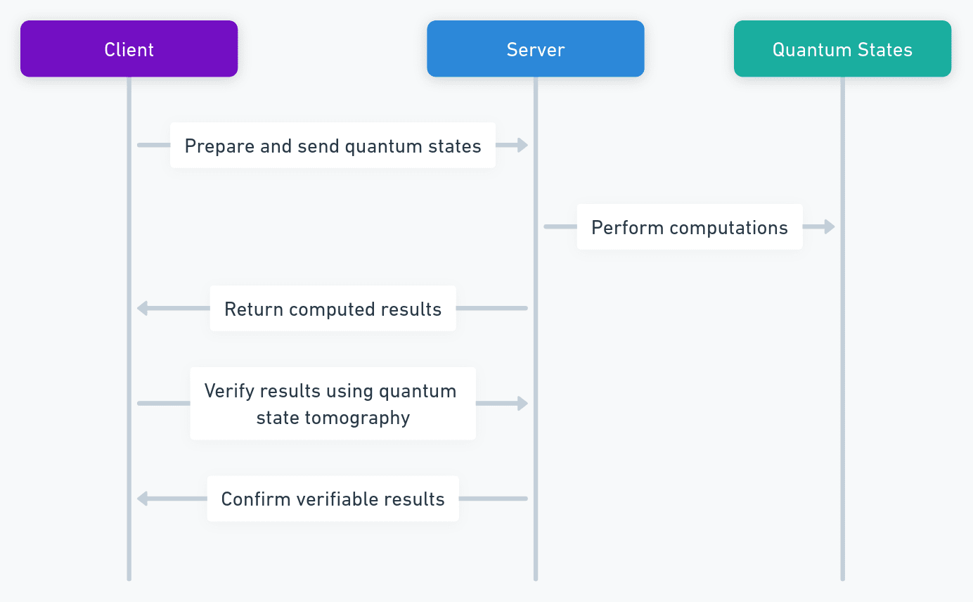 This project focuses on achieving verifiable blind quantum computing by using trapped ions and single photons. The process involves the client preparing quantum states and sending them to the server, which performs the computations without knowledge of the states.