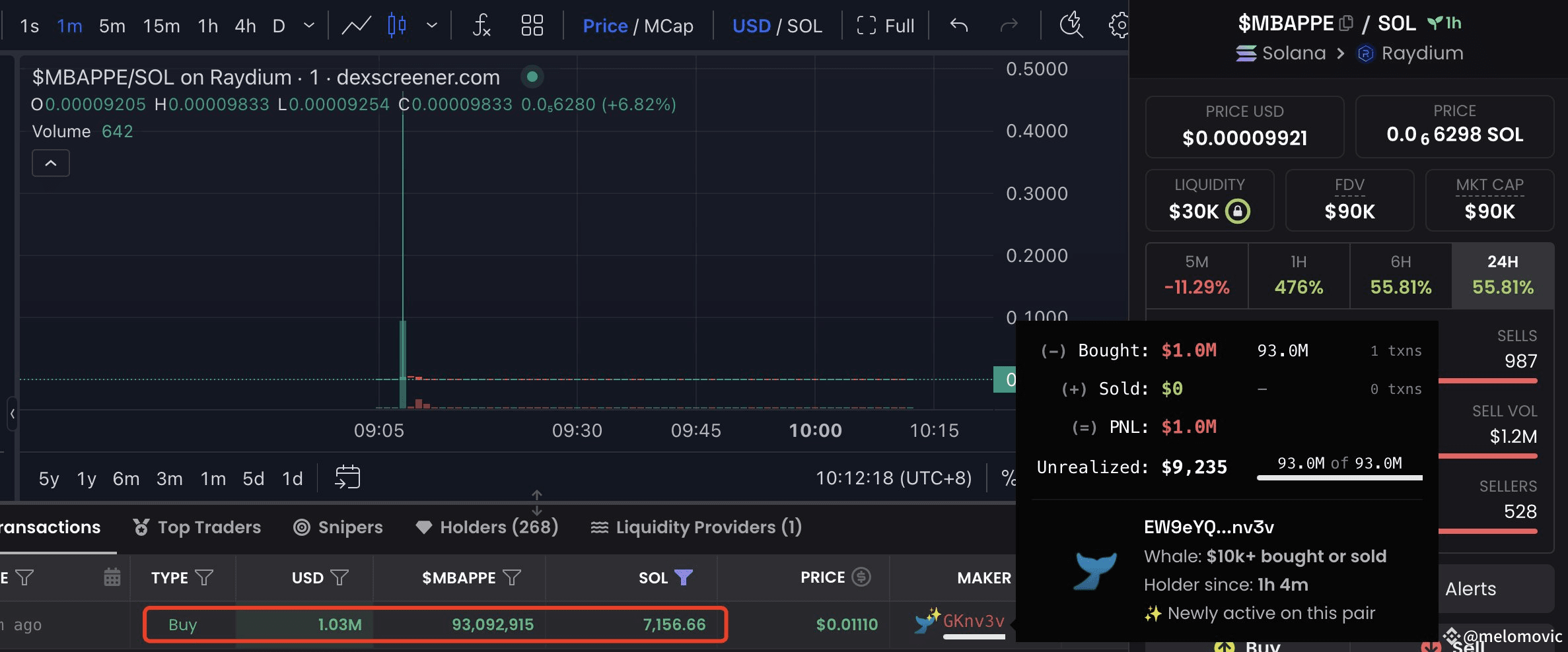 A degen created a new wallet and spent 7,156 $SOL ($1.03M) purchasing a #MEMEcoin named $MBAPPE in a single transaction, which is now only worth $9.2K or even, dust at the point of reading this.