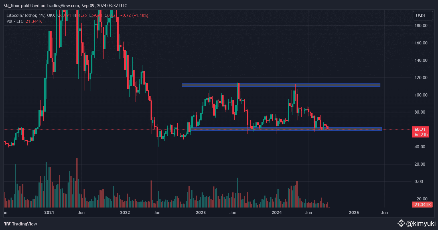 Biểu đồ LTC/USDT hàng tuần | Nguồn: TradingView