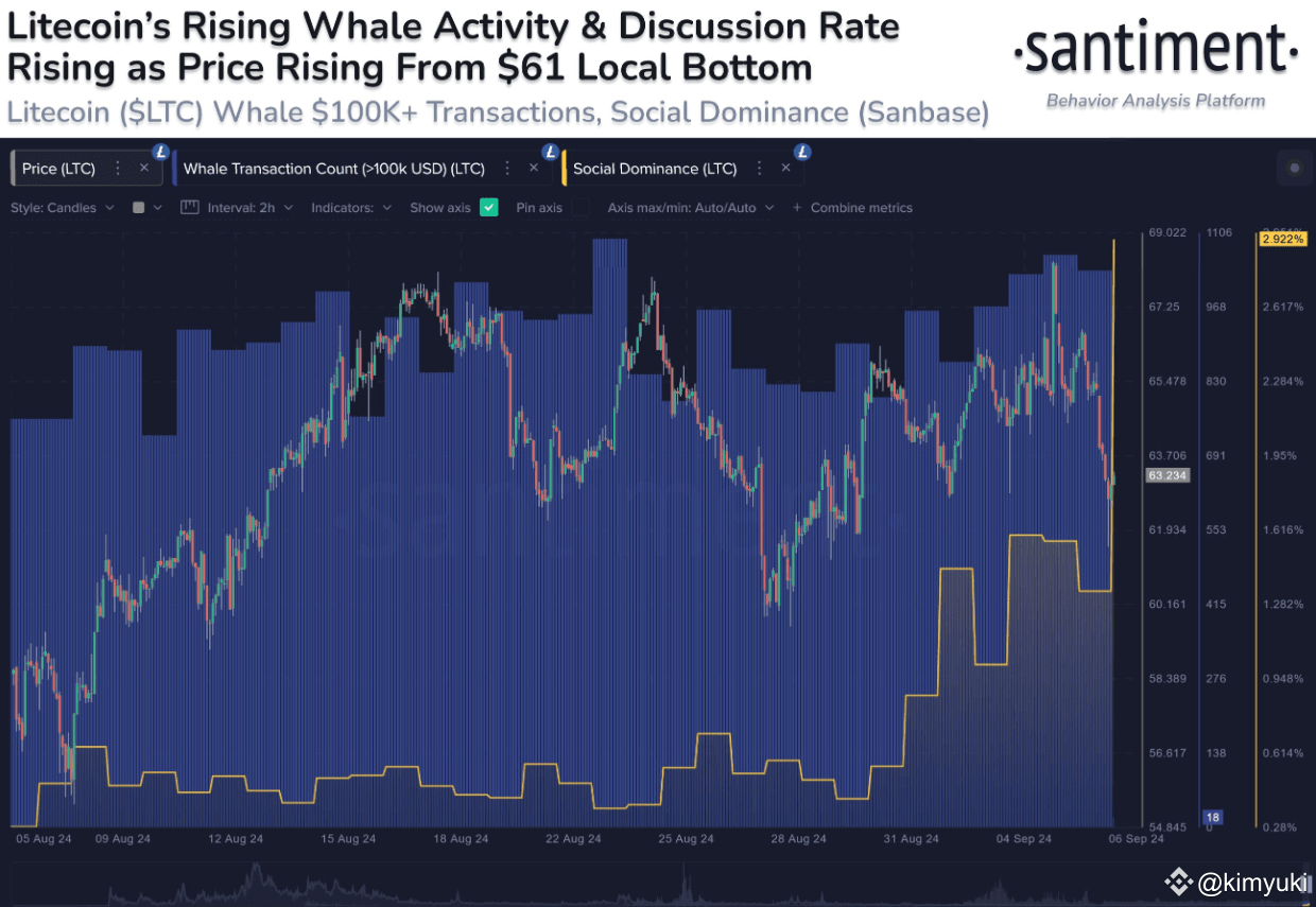 Sự tăng vọt này không phải là một sự kiện đơn lẻ mà dường như là một phần của xu hướng quan tâm ngày càng tăng đối với Litecoin. Ngoài sự gia tăng trong các giao dịch có giá trị lớn, còn có sự gia tăng đáng kể về mức độ chú ý mà Litecoin nhận được trên các nền tảng mạng xã hội khác nhau.