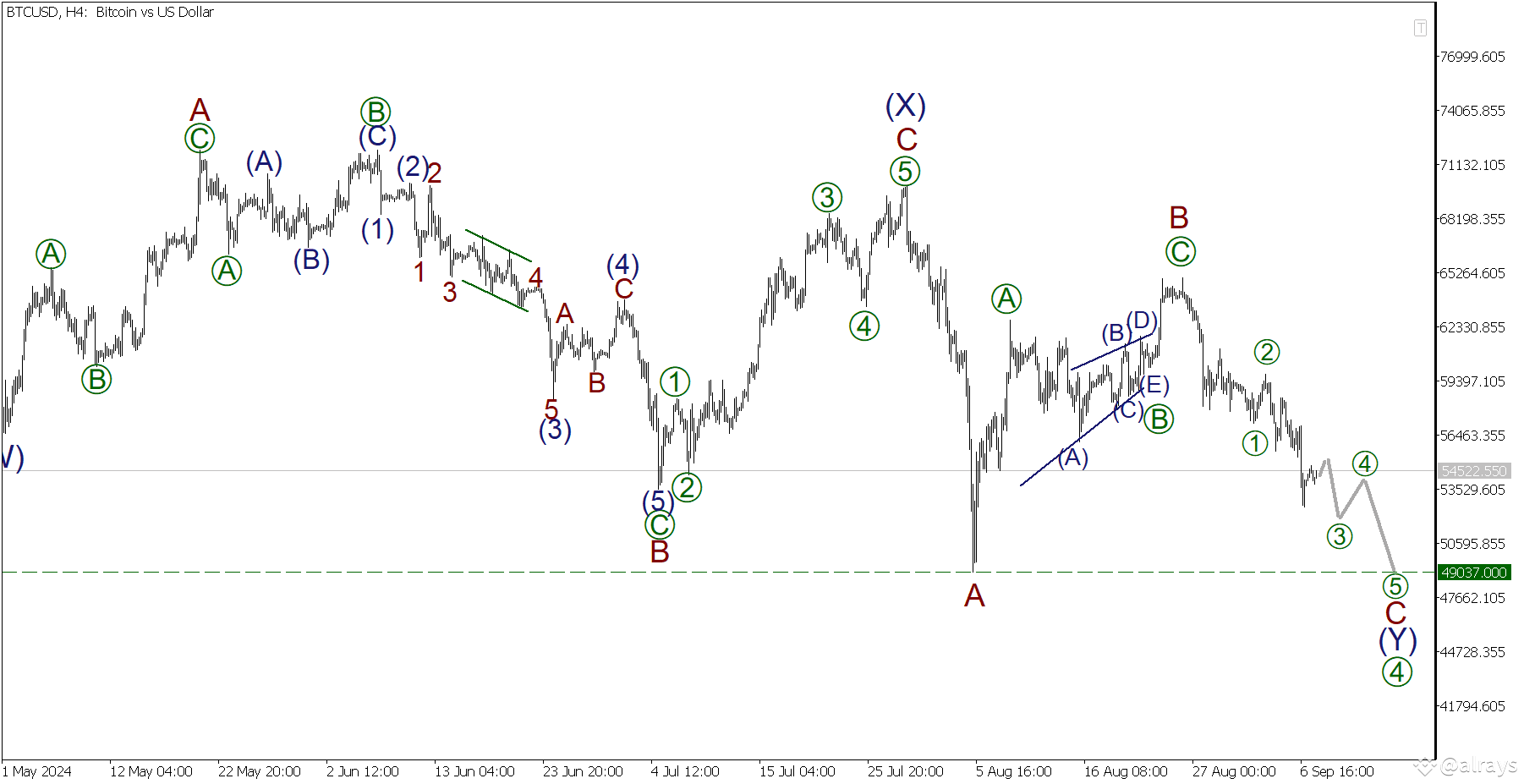 تحليل موجات إليوت الأسبوعي للبيتكوين بداية من 09.09.2024
