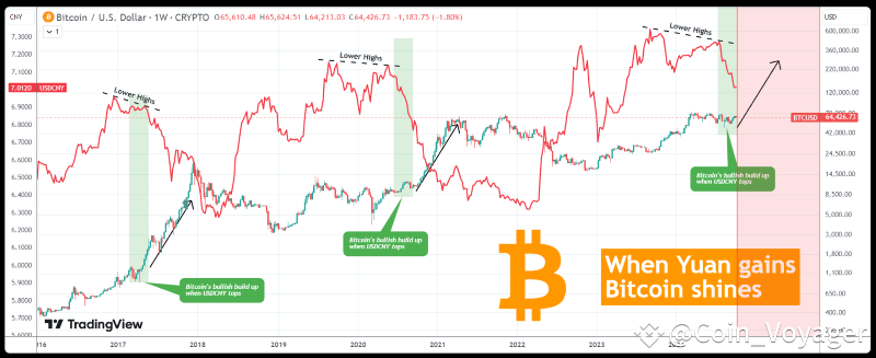 In fact, according to the chart shared by the analyst, similar developments occurred back in 2017 and 2020, and the current cycle was identical to the one in 2020 when the price of the maiden cryptocurrency initiated a rally right after the USDCNY pair reached its top.