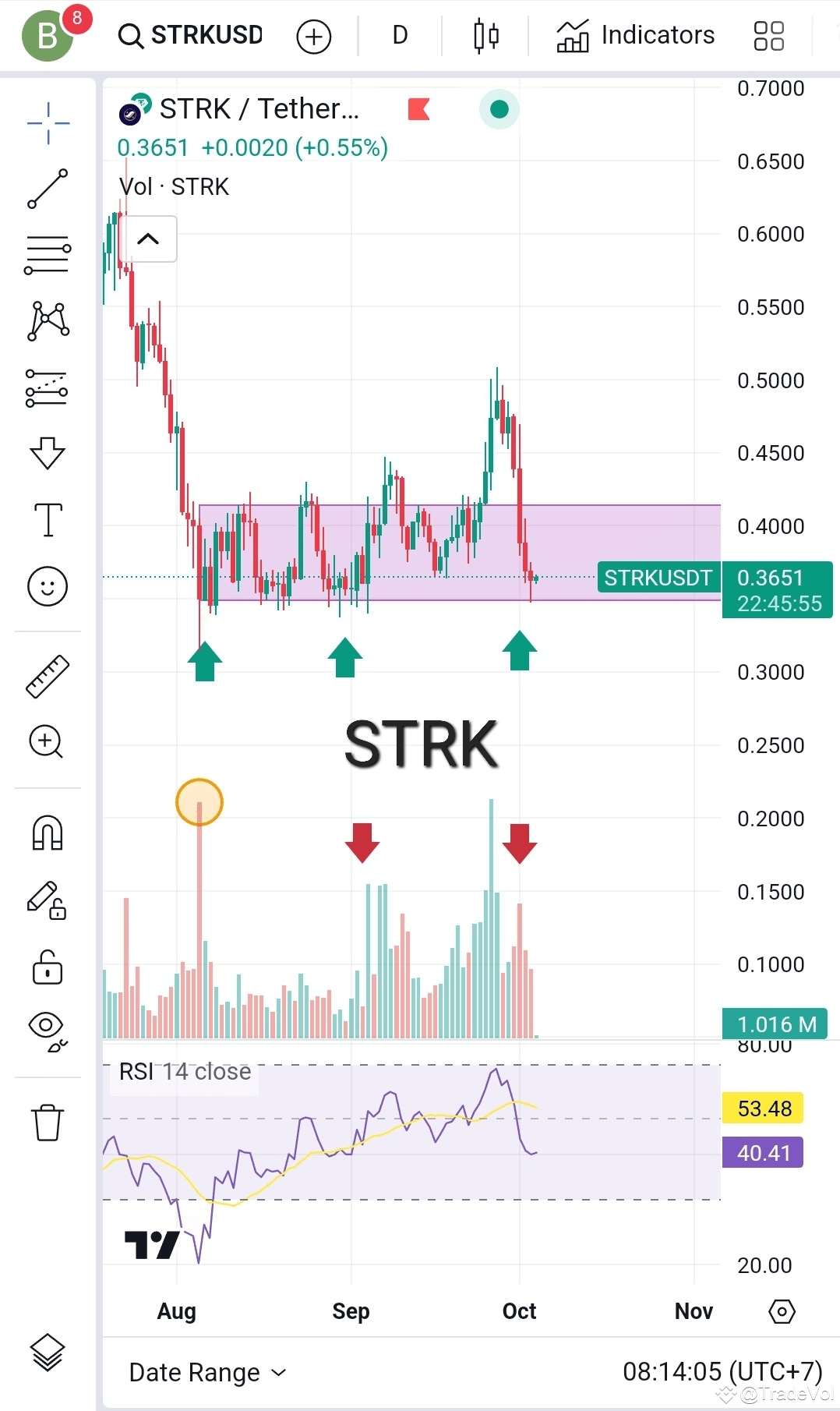 #STRK vẫn giữ giá tốt trong box cùng với những cột vol cho thấy có sự tham gia đỡ giá từ các MM
