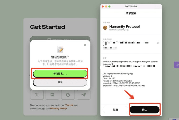 4、OKX WEB3钱包会自动添加Humanity网络(如图) 5、需要发起签名 6、输入名字、输入邀请码(必填),如何下一步。不建议的话,你可以输入我的邀请码:y9527. 7、下一步之后,填写资料+邮箱,需要在邮箱链接确认,在确认之后你会到这个界面。