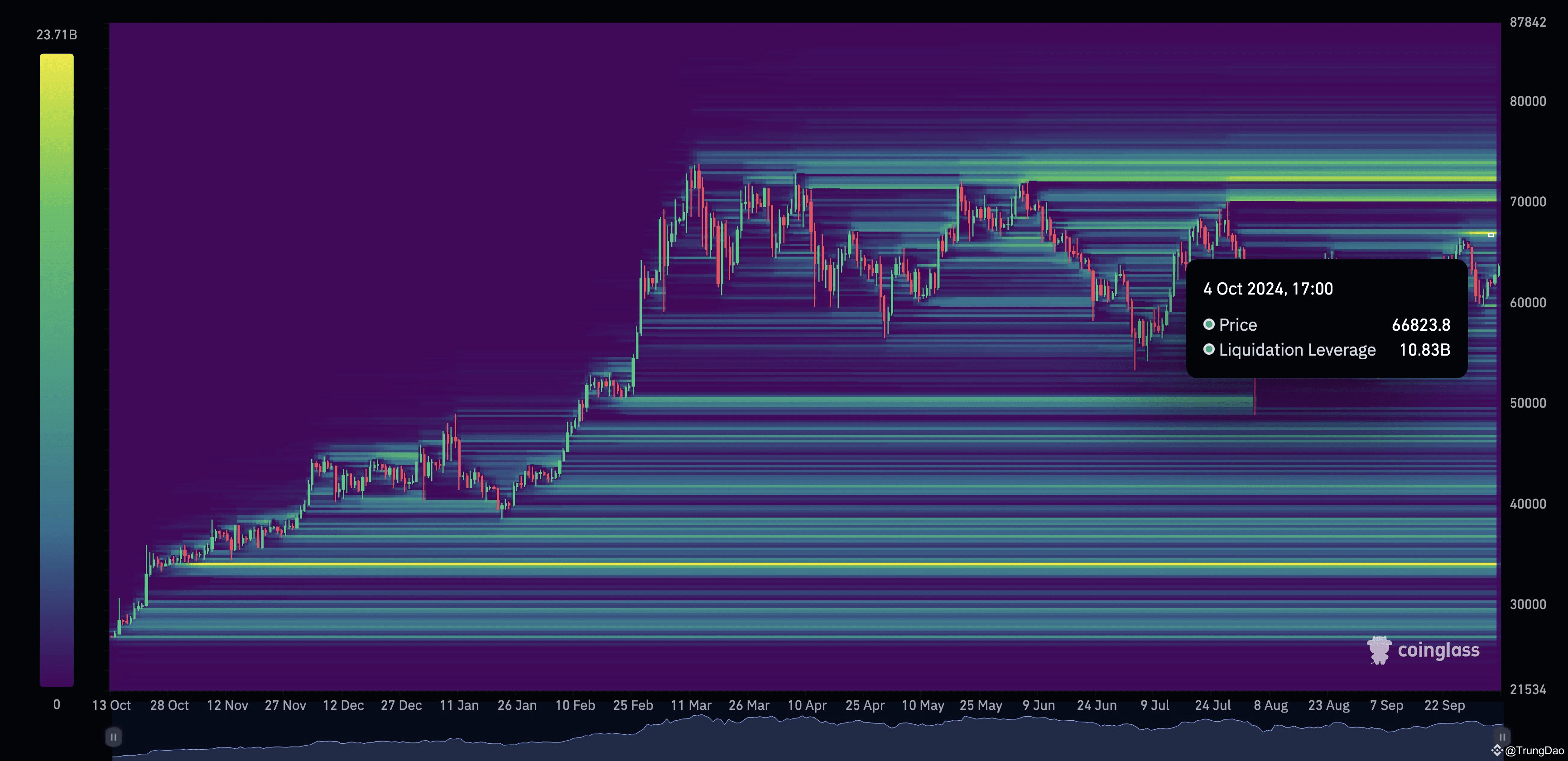 Nếu mức này bị phá vỡ, có thể kích hoạt một chuỗi thanh lý lớn, đưa giá lên mức $70,300, nơi có thêm 16 tỷ USD vị thế bán khống dễ bị thanh lý.