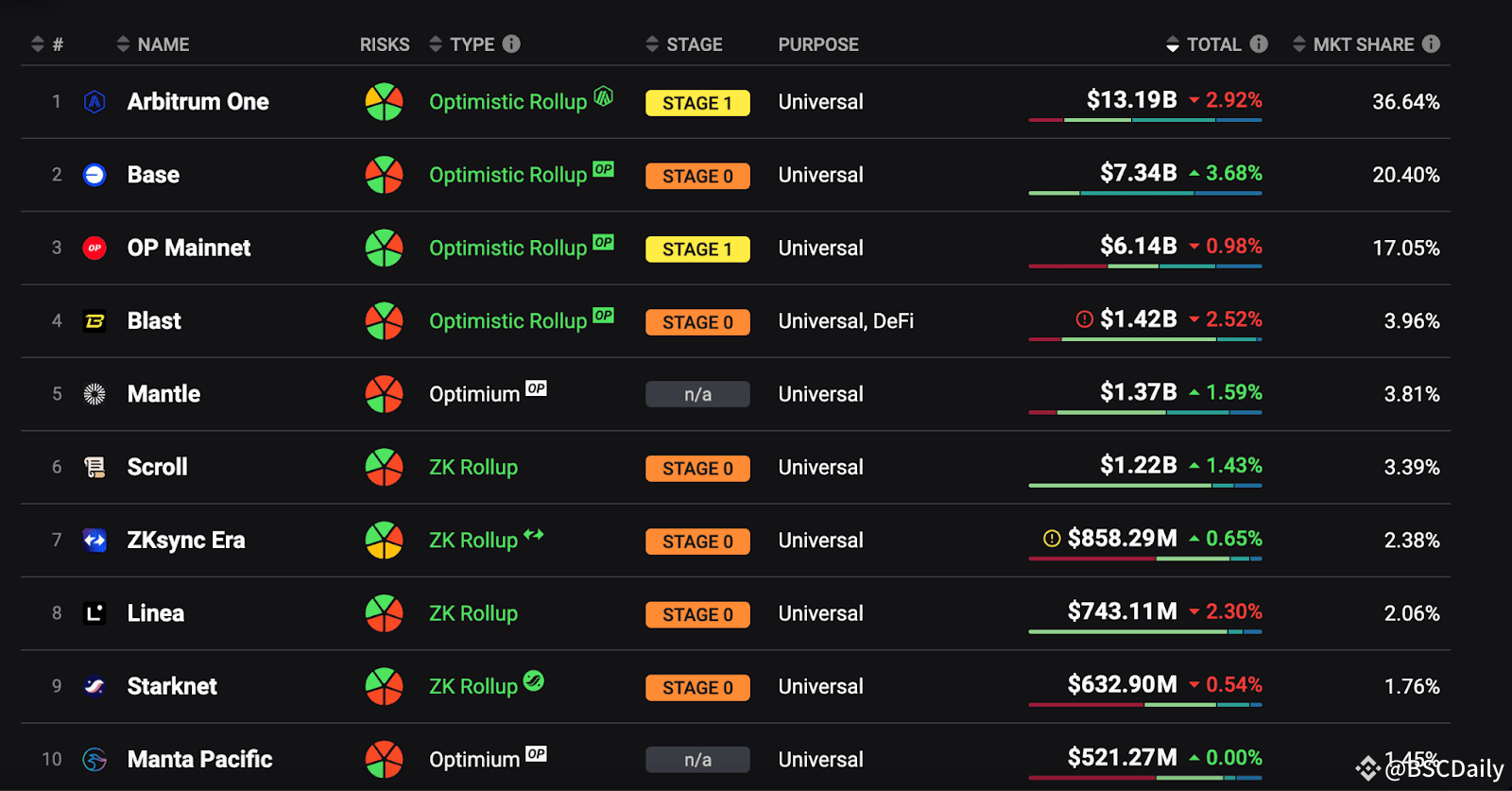 As of October 9th, 2024, Scroll is currently the 6th largest Ethereum Layer-2 network and the 1st ZK chain by TVL (US$1.15Bn as of Sep 15, 2024), exceeding Linea, zkSync, Starknet, Taiko and Polygon zkEVM with the total TVL of $1.22B.