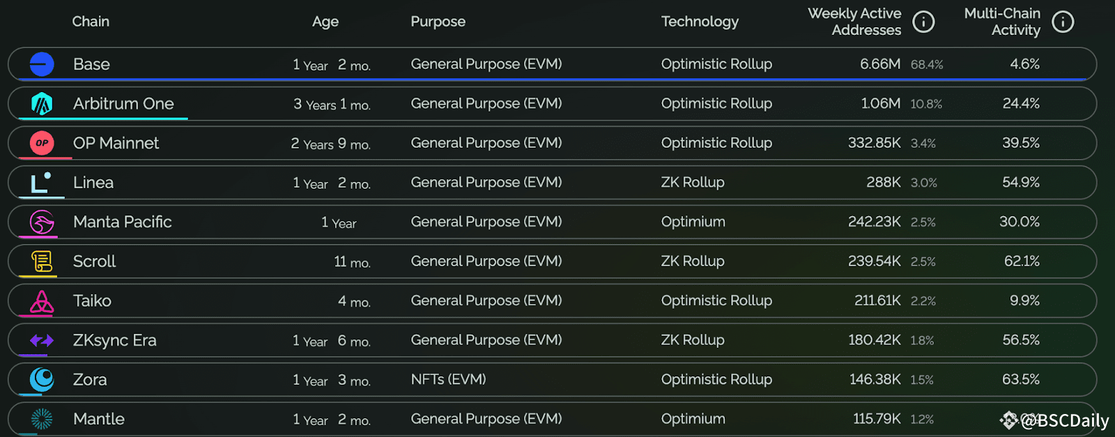 Scroll has demonstrated exceptional network health compared to other Layer-2 solutions. Despite being relatively new, it boasts nearly 240K weekly active addresses, ranking 6th in the standings. This impressive performance highlights Scroll's ability to attract and retain users.