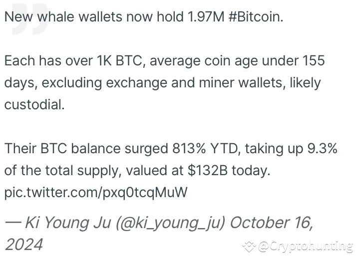 A similar accumulation pattern was also observed among newer whales by fellow analyst and CryptoQuant CEO Ki-Young Ju, who wrote in an Oct 16 X post that new whale wallets with an average coin age of under 155 days reached a new high of 1.97 million BTC. (See below.)