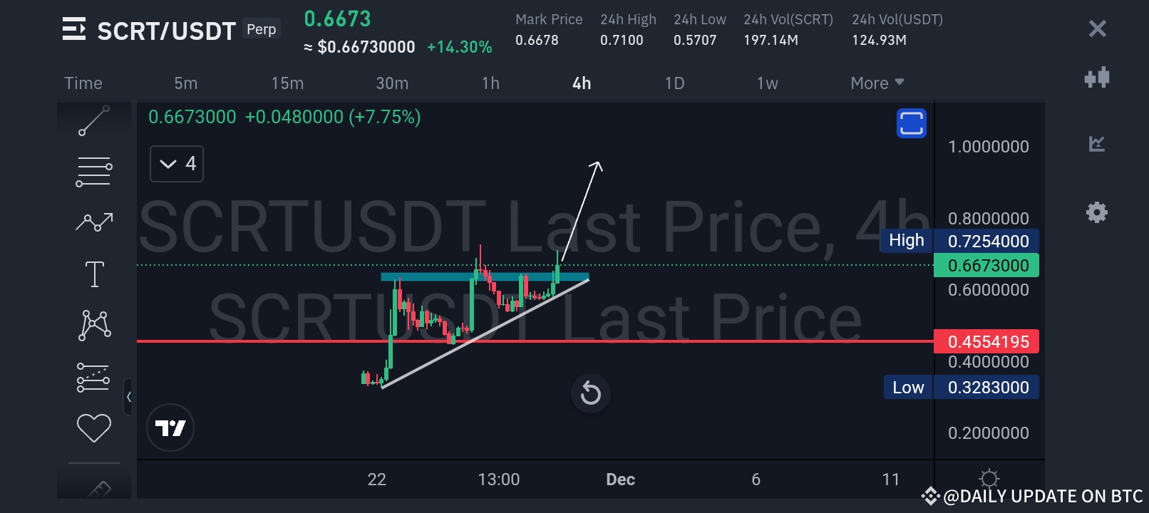 With this breakout, SCRT is poised to test higher levels in the coming sessions.
