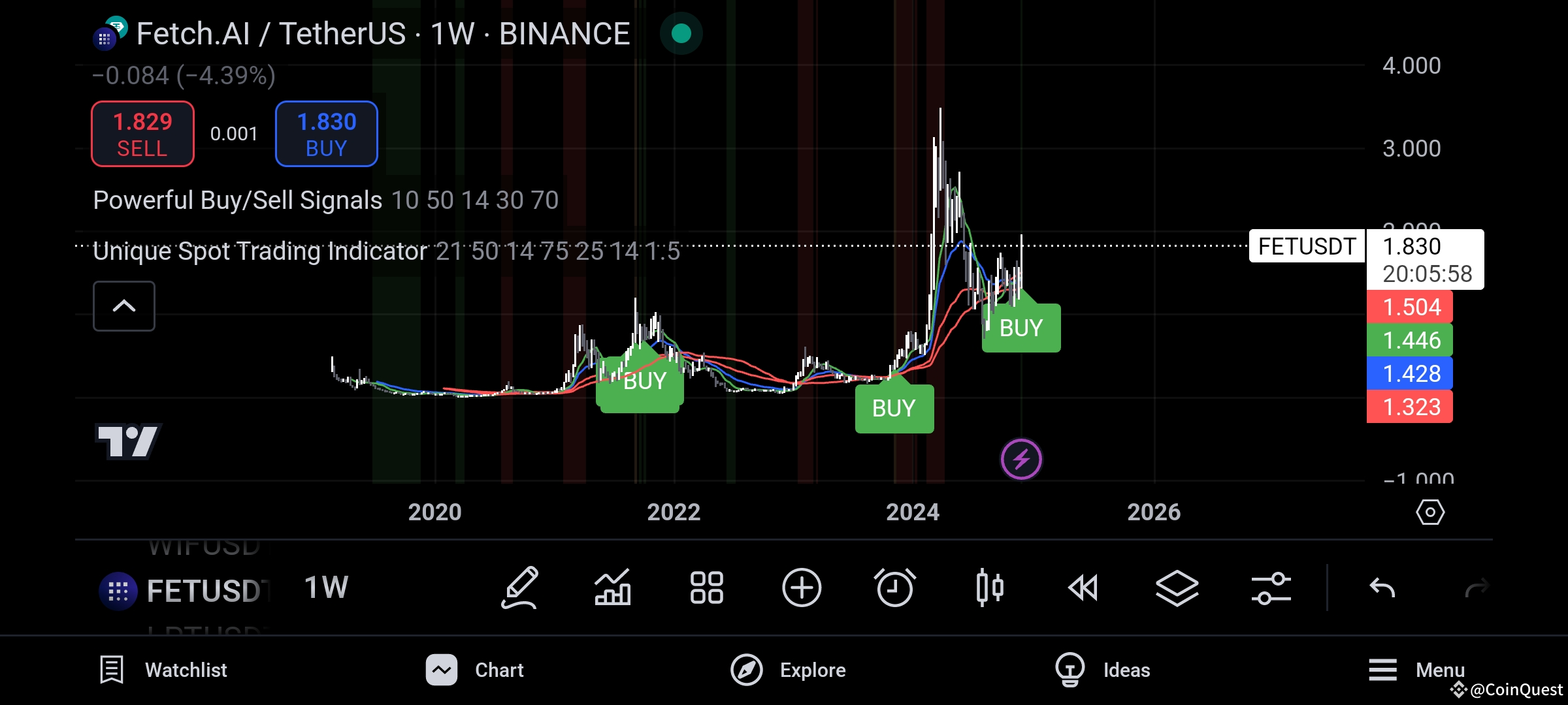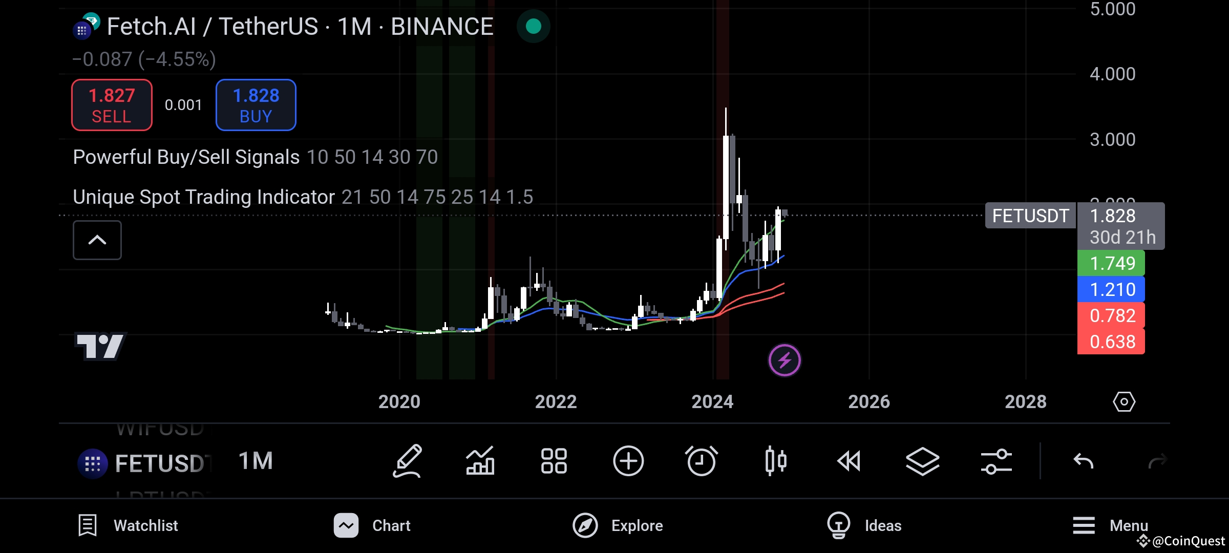 The monthly chart shows FET’s historical tendency for explosive rallies, followed by healthy consolidations. After its recent surge to $1.80+, the coin is stabilizing, hinting at a potential breakout or deeper correction. Key levels to watch: