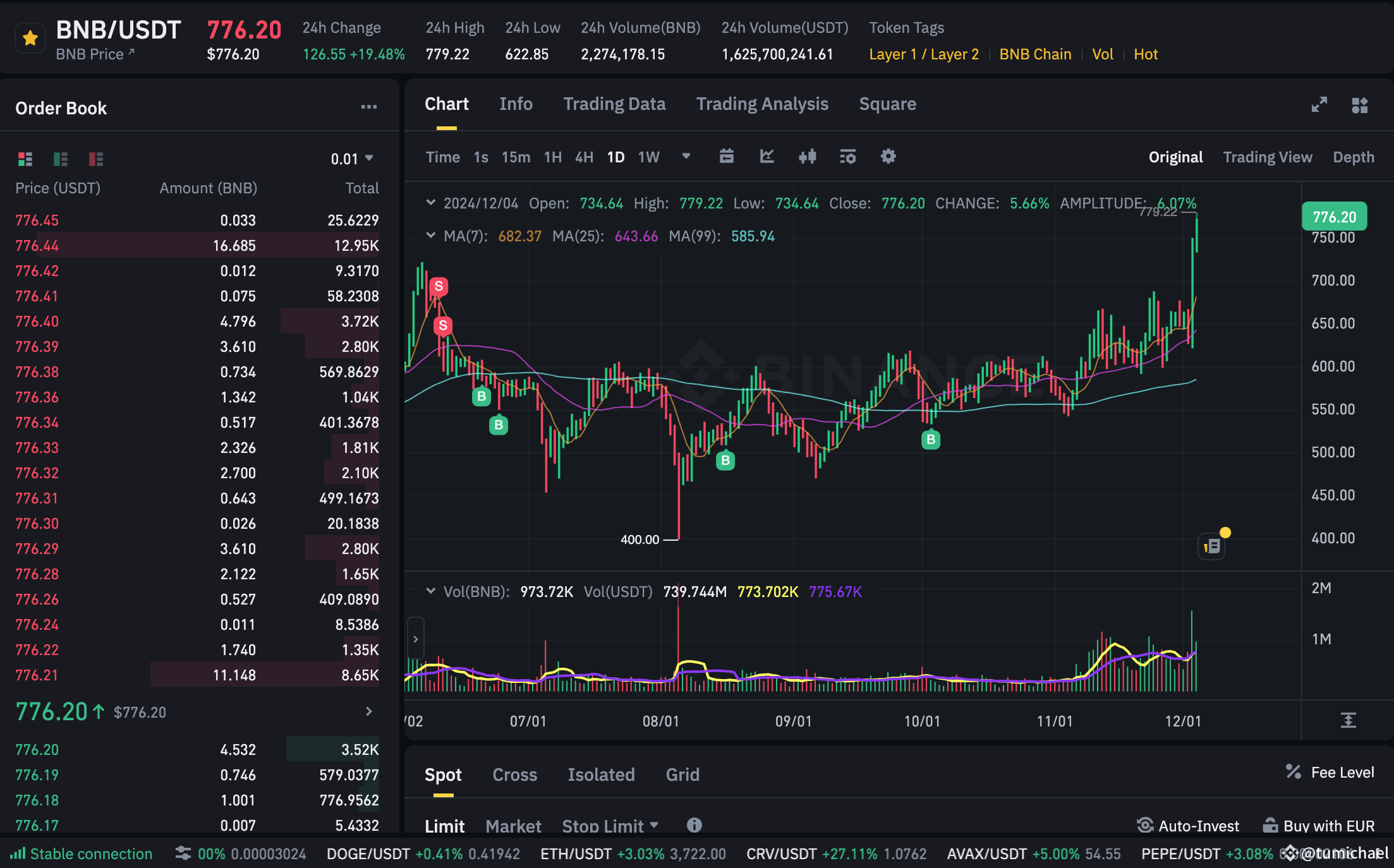The crypto world has been abuzz with excitement as Binance Coin ($BNB ) has shattered its previous all-time high, reaching a staggering $776.20 at this time of writing (December 4th, 2024)