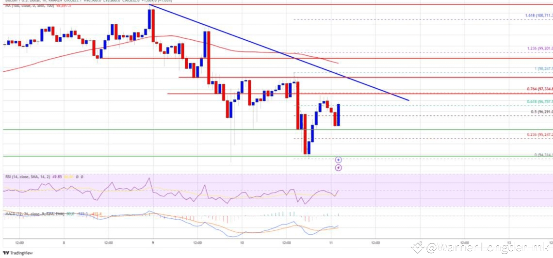 After conducting a detailed analysis of Bitcoin’s recent price movements, I observed that it has managed to hold above the critical $94,200 support level. Despite facing resistance at higher levels, Bitcoin seems to be forming a base that might fuel a fresh upward move, provided it breaks key resistance zones.