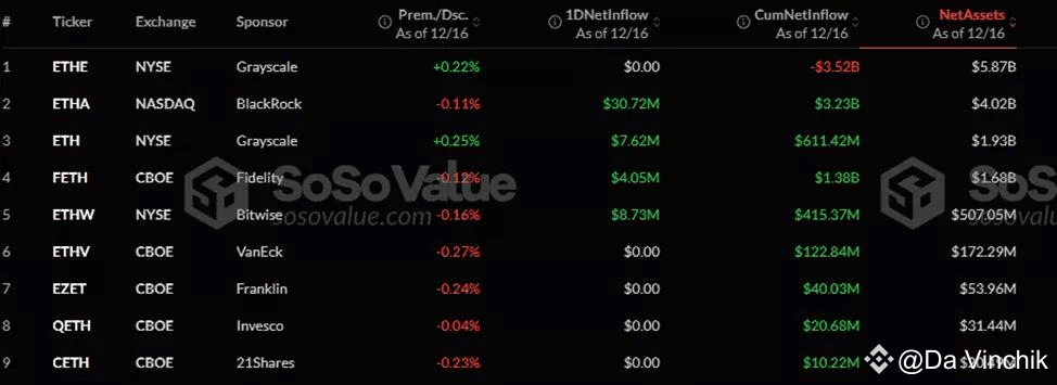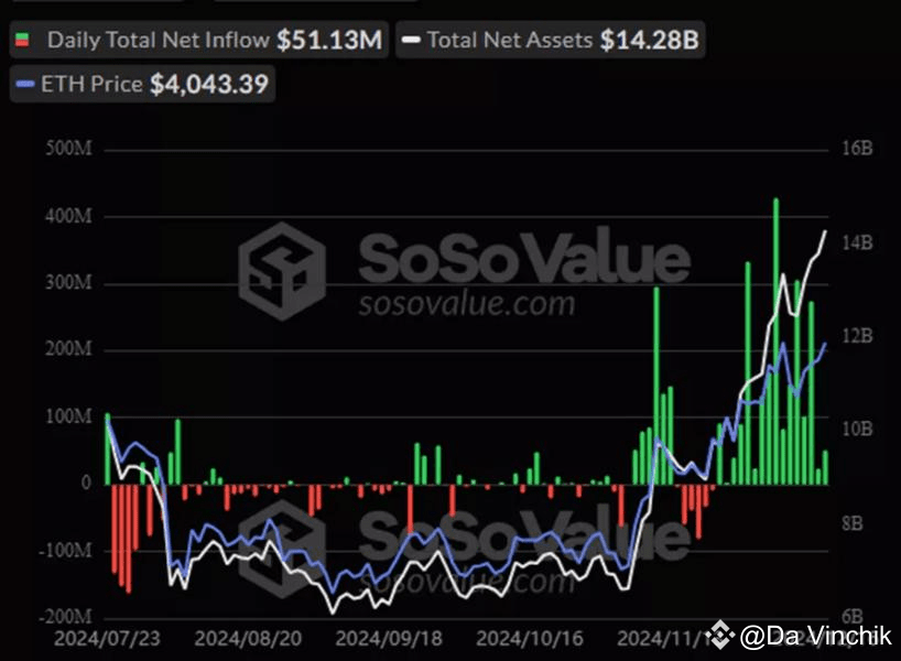 #btc #eth #AUM 16 декабря приток в спотовые биржевые фонды на базе Ethereum составили $51,1 млн. В течение последних 16 дней инвесторы вложили в продукты $2,3 млрд.