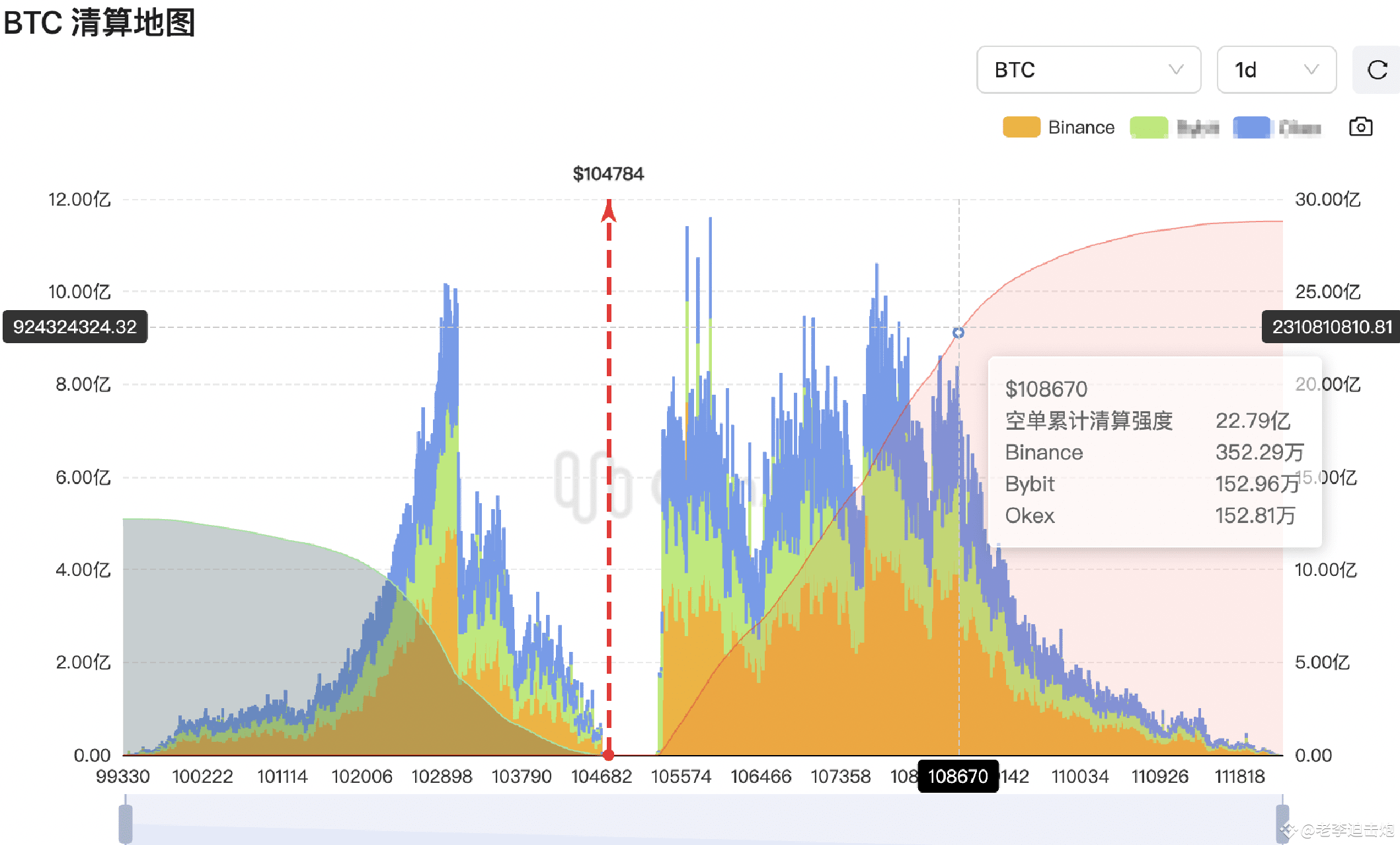 #coinank 清算地图显示,如果行情创新高涨至108670美元,将有价值约22.79亿的空单被清算;如果行情跌至周末低点100600美元附近,将有价值约12.15亿美元的多单被清算。这些可以作为主力风控和介入位置参考。