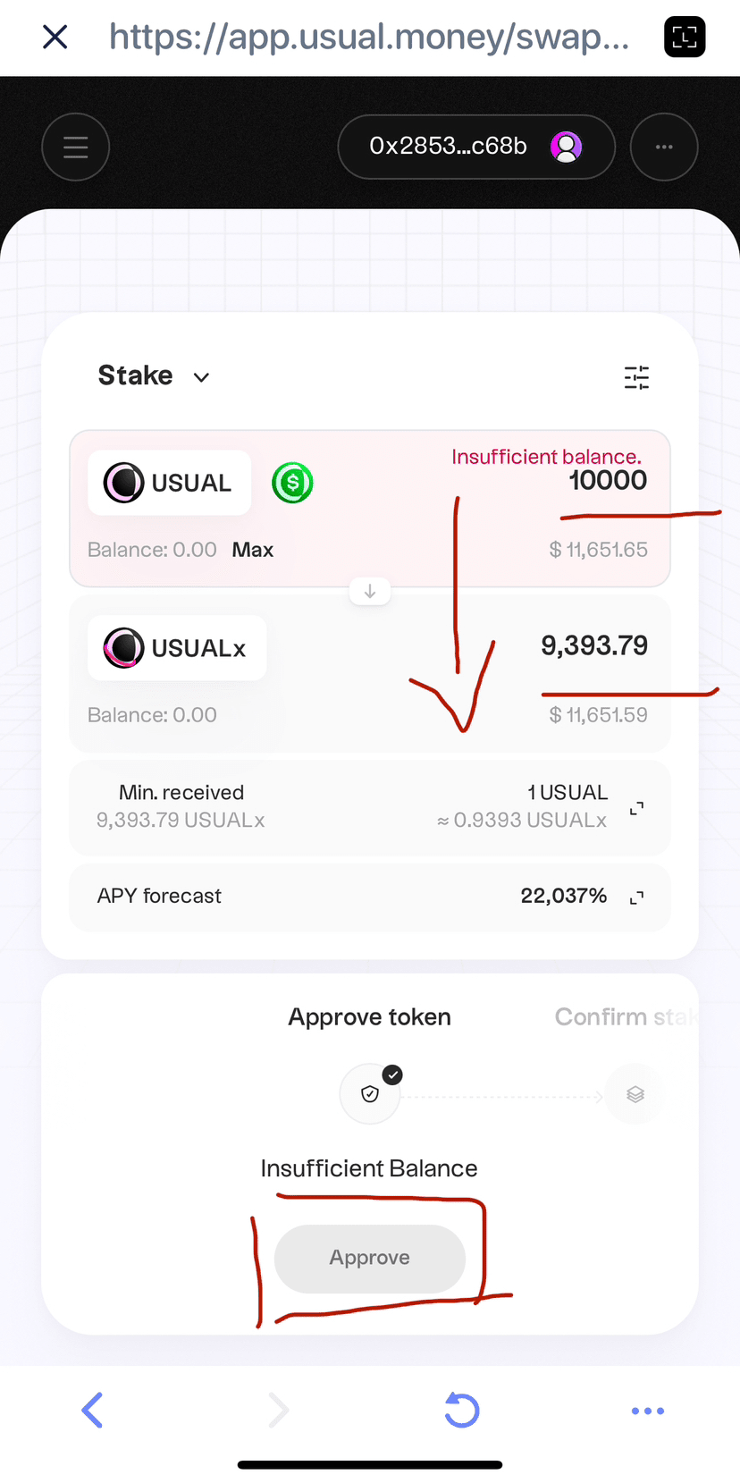 你会看到每个USUAL能换的USUALx数量更少,这是因为USUALx把收益体现在了它和USUAL的相对价值上,不用担心这是错误的。