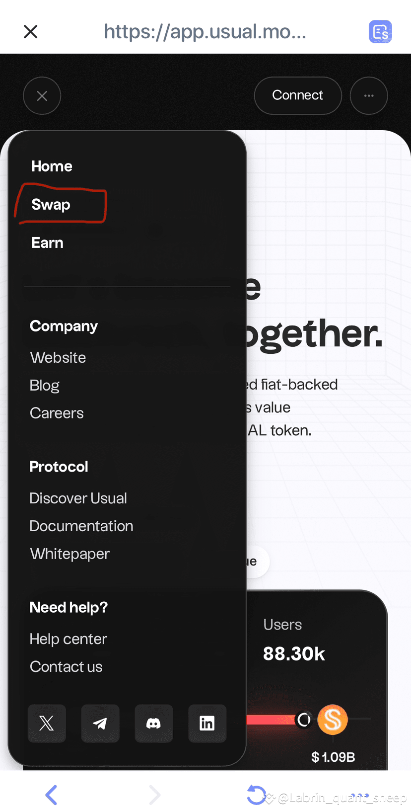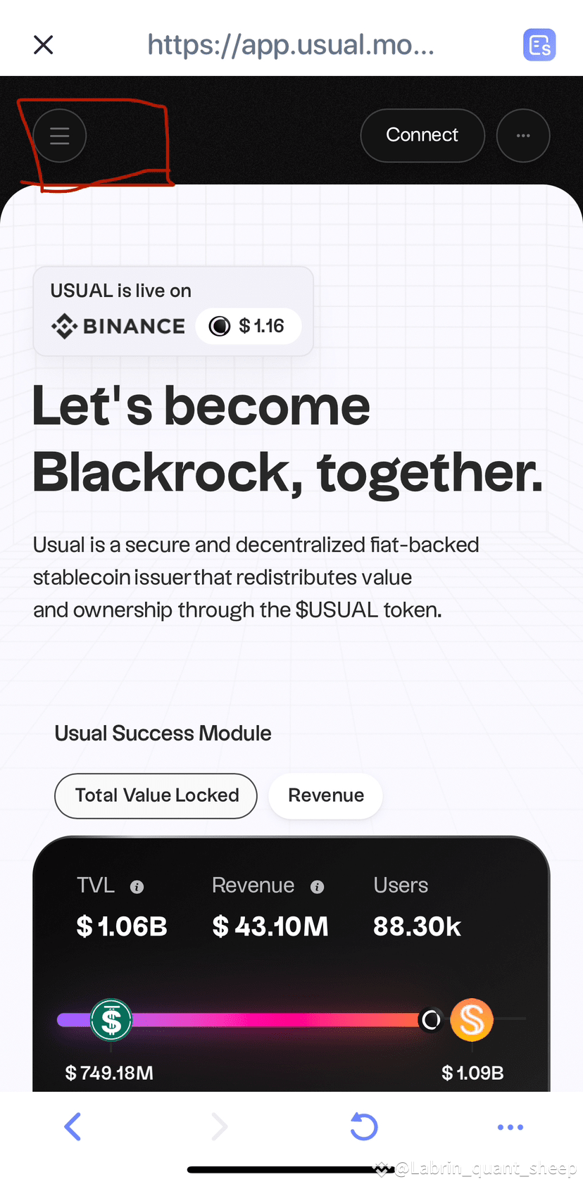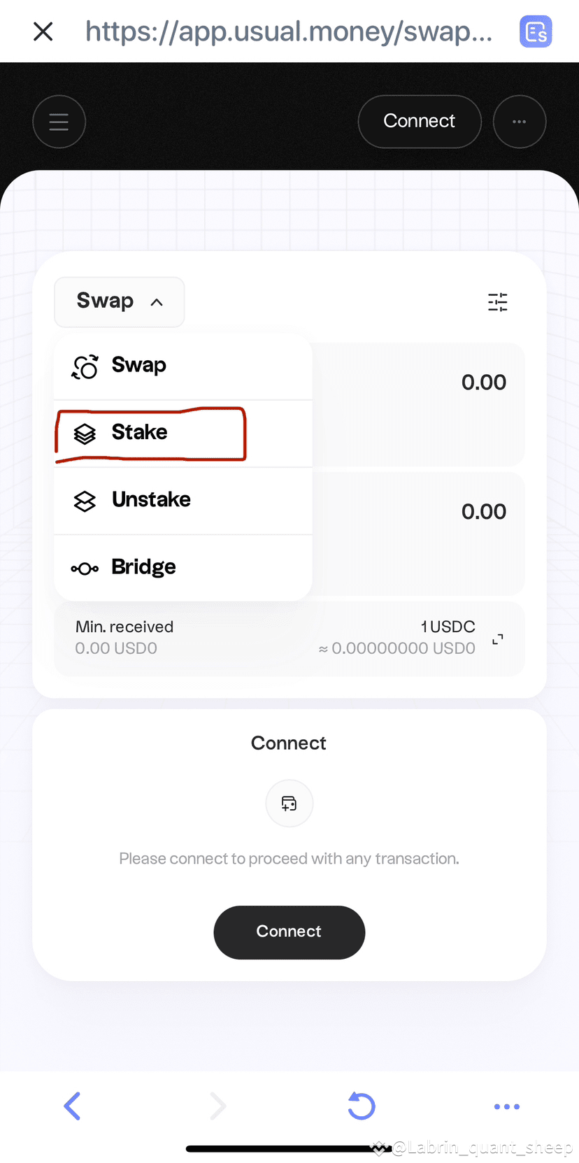 首先在钱包内置浏览器输入Usual的网址:Usual.money