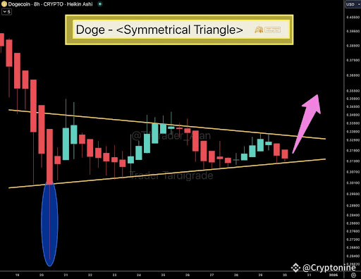Trader Tardigrade highlighted a symmetrical triangle forming on the DOGE chart, which could act as a launchpad for the next rally.