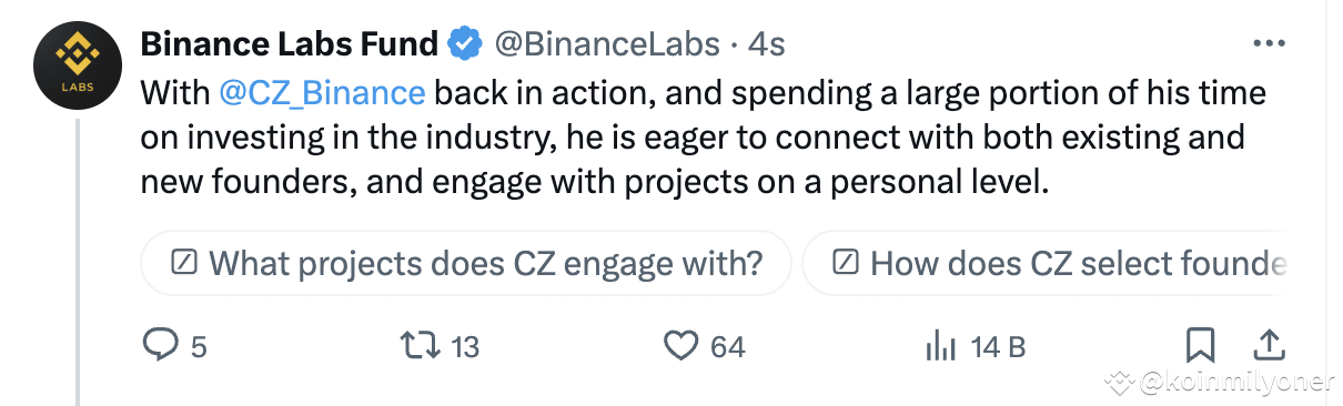 As per the announcement, they are looking to completely rebrand their venture capital branch that operates under the name Binance Labs, Changpeng Zhao will fully spearhead this initiative. Binance labs aims to roll out this rebranding by the end of 2025 In all business portfolios.
