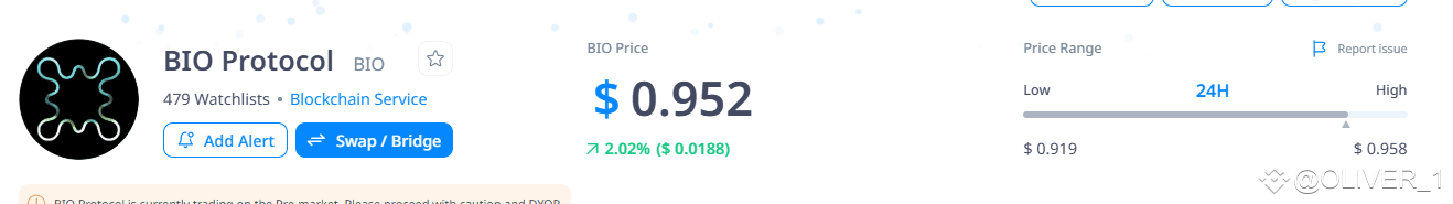 As of January 3, 2025, BIO Protocol (BIO) is trading at approximately $0.952, reflecting a 2.57% increase over the past 24 hours.