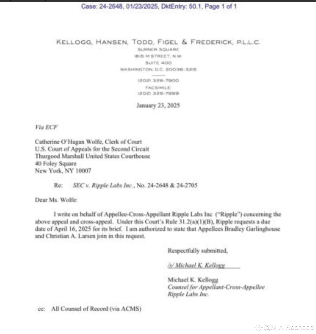 $XRP As the legal struggle between Ripple and the Securities and Exchange Commission (SEC) continues, Ripple recently requested a deadline of April 16, 2025, to deliver its answer in the matter. Following the SEC's filing of its appeal brief, which demonstrated its resolve to contest the previous court decision, Ripple made this request.#CryptoSurge2025
