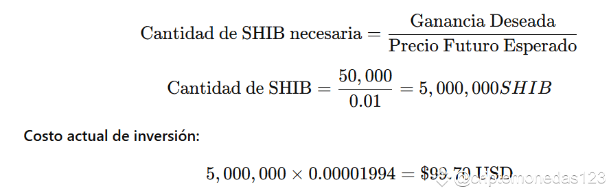 Actualmente, el precio de Shiba Inu Coin es de aproximadamente $0.00001994 USD. Para calcular la cantidad que debes comprar hoy, usamos la siguiente fórmula: