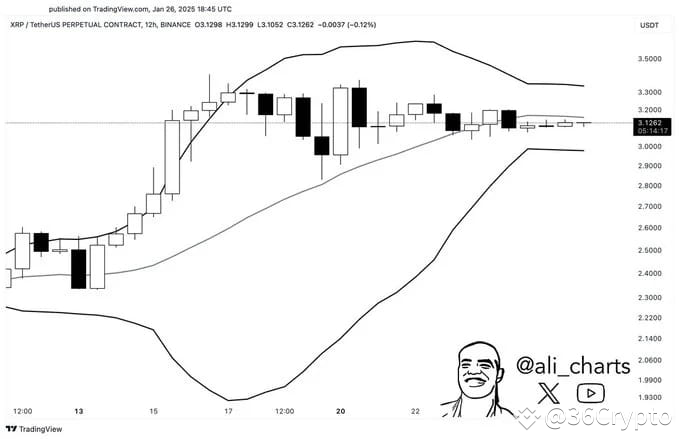 Adding to the uncertainty, Ali, a market analyst, has noted a crucial development in XRP’s technical analysis. In a tweet, he pointed out that the Bollinger Bands on XRP’s daily chart are tightening. This “squeezing” pattern often signals an imminent and significant price move.