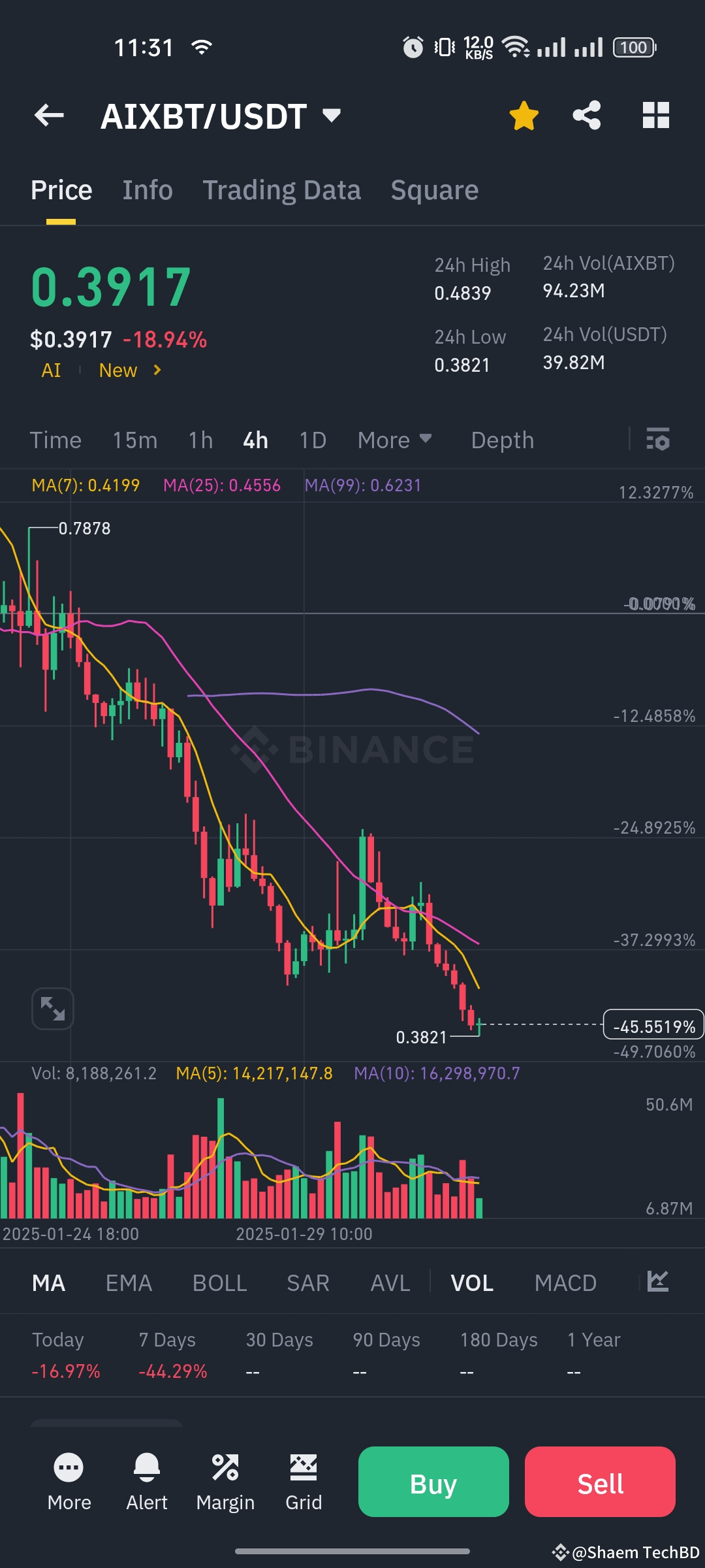 Now AIXBT /USDT trade at the range of 0.39 $ with a 24-hour trading volume of 39M. Now this is the best time to buy this token.