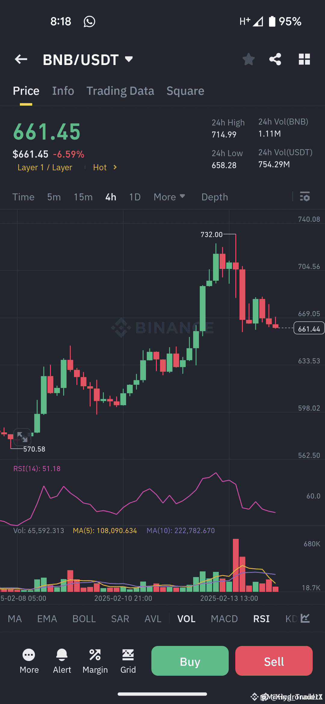 Chart Analysis: $BNB is consolidating within a potential bullish pennant (white lines), suggesting an upcoming breakout. 💥 Declining volume (red bars) supports this theory. RSI hovering around 50 indicates indecision, but a decisive move could trigger a strong trend. 📈