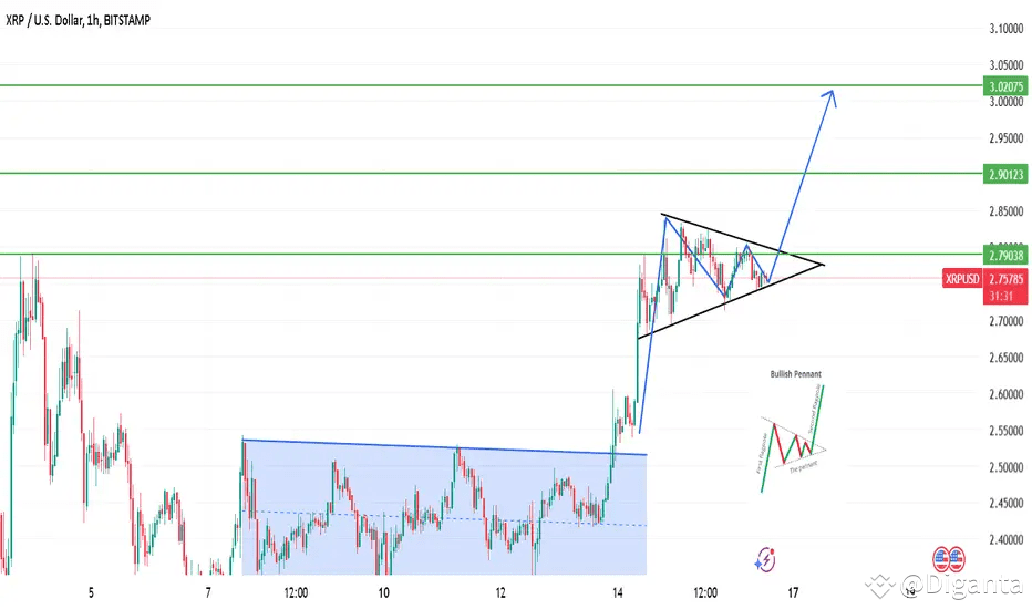 Looking at the chart, XRP is painting a textbook bullish pennant. Here's the breakdown:
