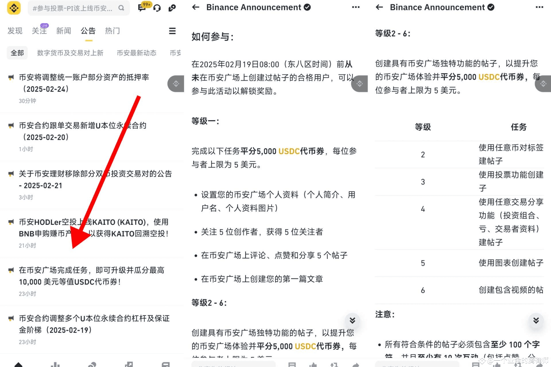 币安发福利了,今天开始【限时福利】零成本领赚取10美金,币安广场新手冲榜攻略