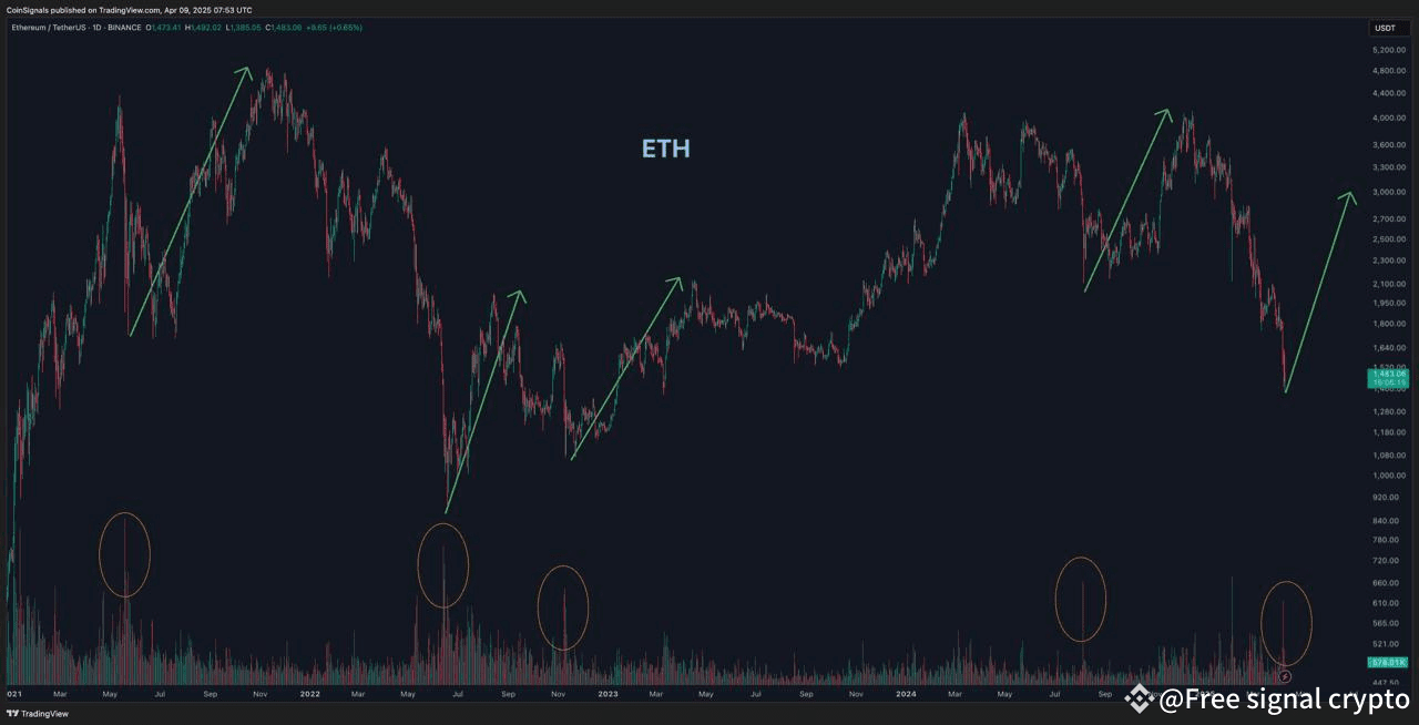 💰 A Big Red Volume candle has marked the bottom for #ETH every time.