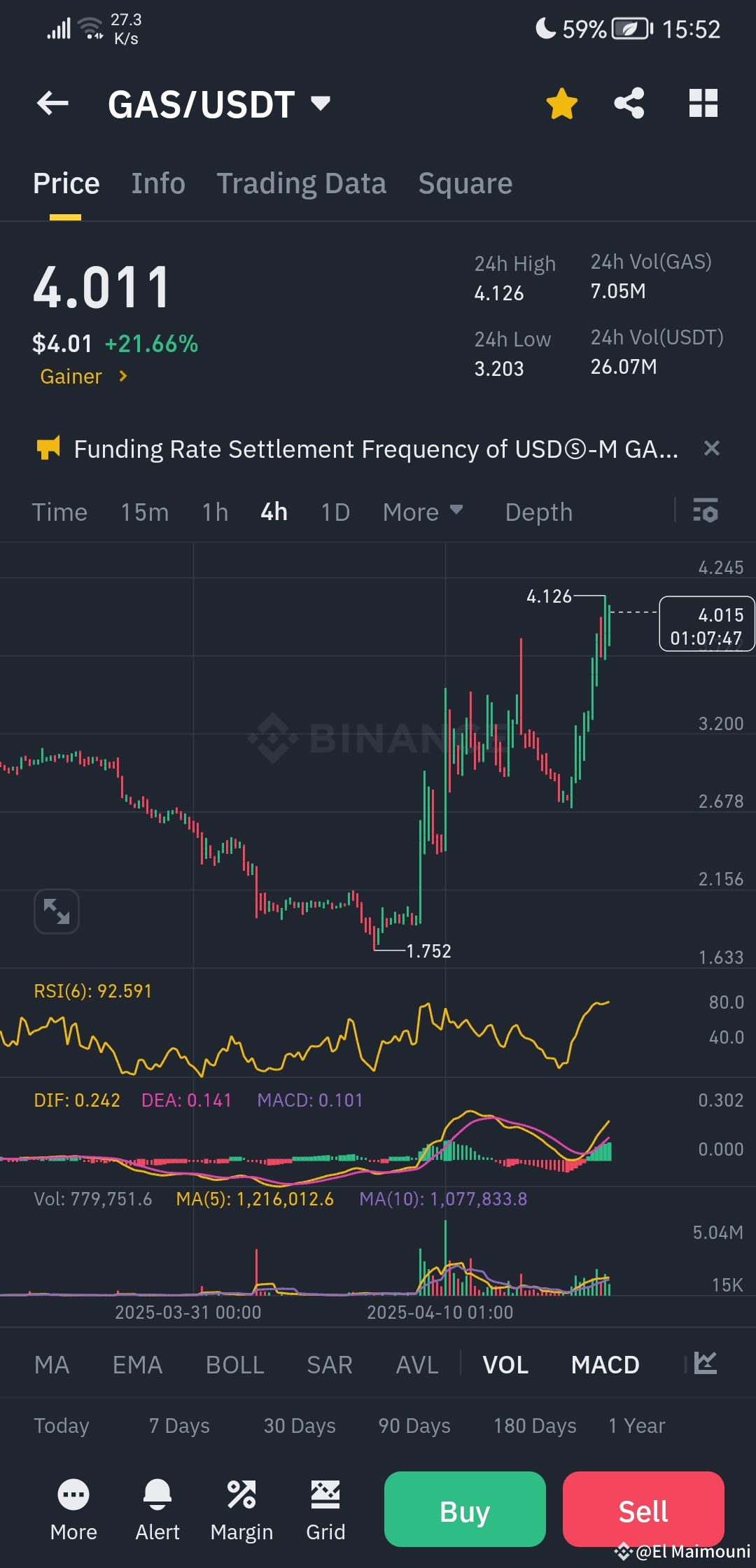 ✅ صعود صاروخي! بعد هبوط حاد إلى مستوى $1.75، عاد GAS بقوة ليسجل قمة جديدة عند $4.12 – بنسبة ارتفاع تتجاوز 130%! هذا يعكس دخول سيولة شرائية كبيرة.
