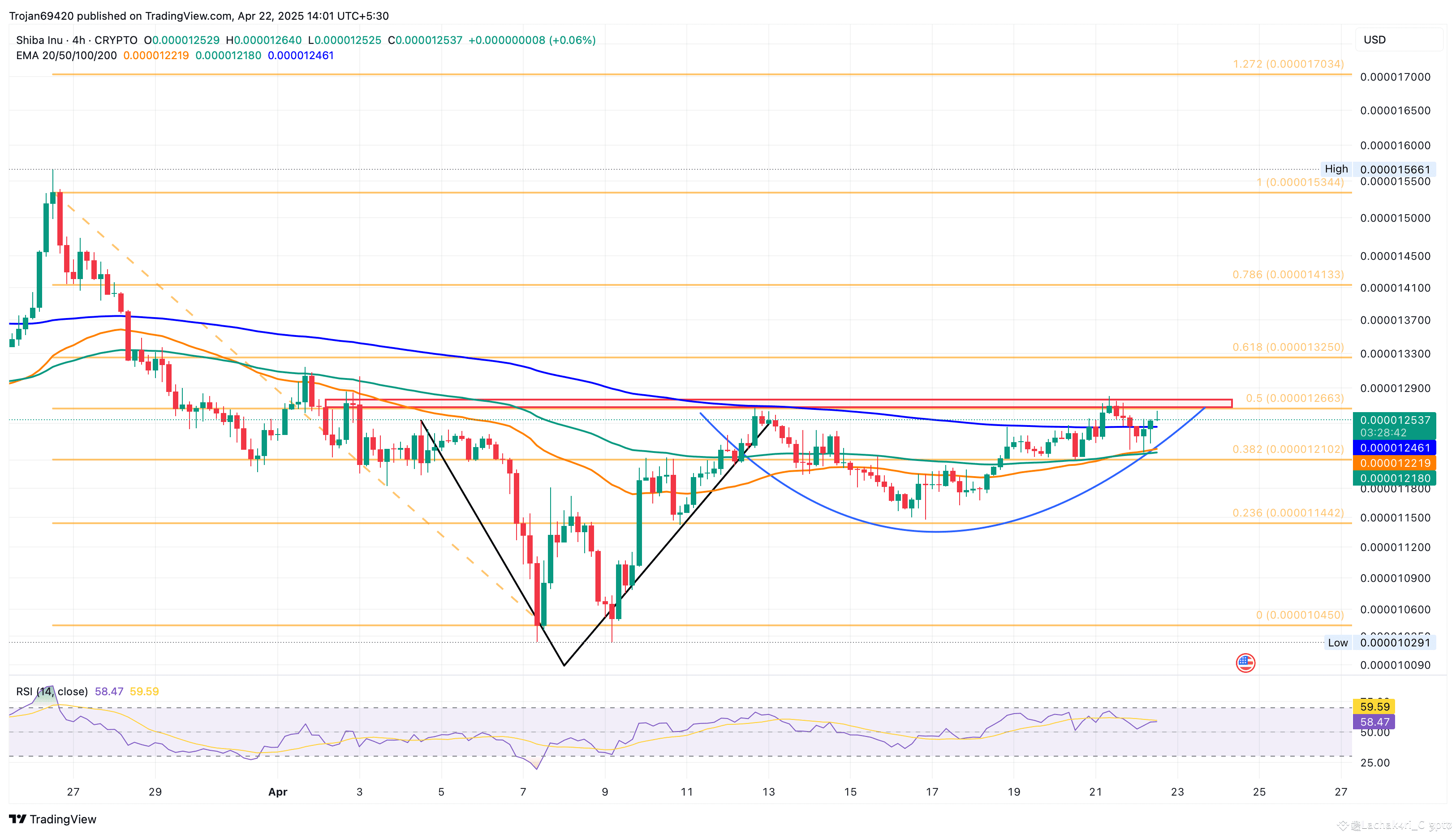 Shiba Inu is preparing for a major breakout above $0.00001266. Can it surge to $0.000015, supported by bullish patterns and strong technical backing?