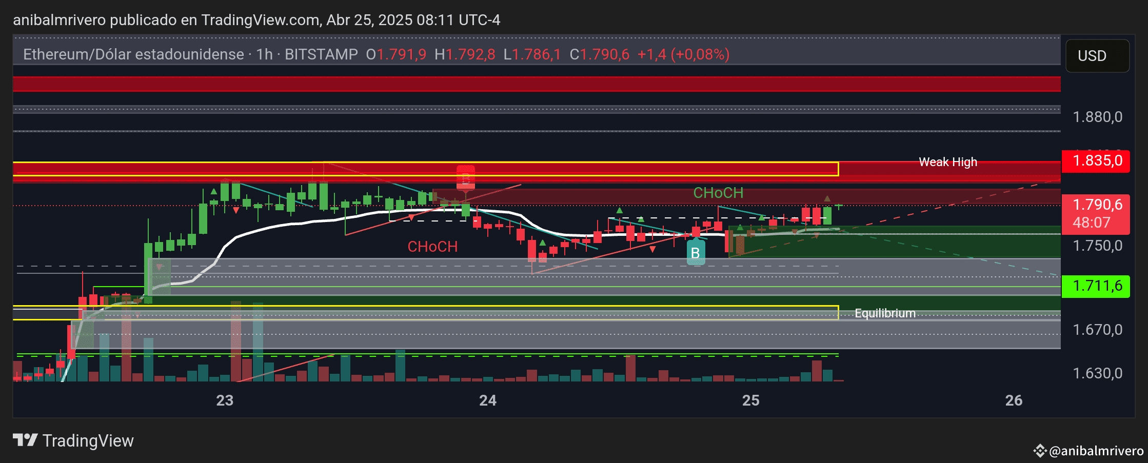 No obstante, los alcistas deben permanecer cautelosos ante un nivel de resistencia significativo que se cierne alrededor de los $1,835.0. Identificado como un "máximo débil", este nivel histórico podría actuar como un muro para cualquier intento de escalada de precios. La reacción del precio al acercarse a esta zona será crucial para determinar la fortaleza del reciente impulso alcista. ¿Logrará ETH superar esta barrera o retrocederá ante la presión vendedora?