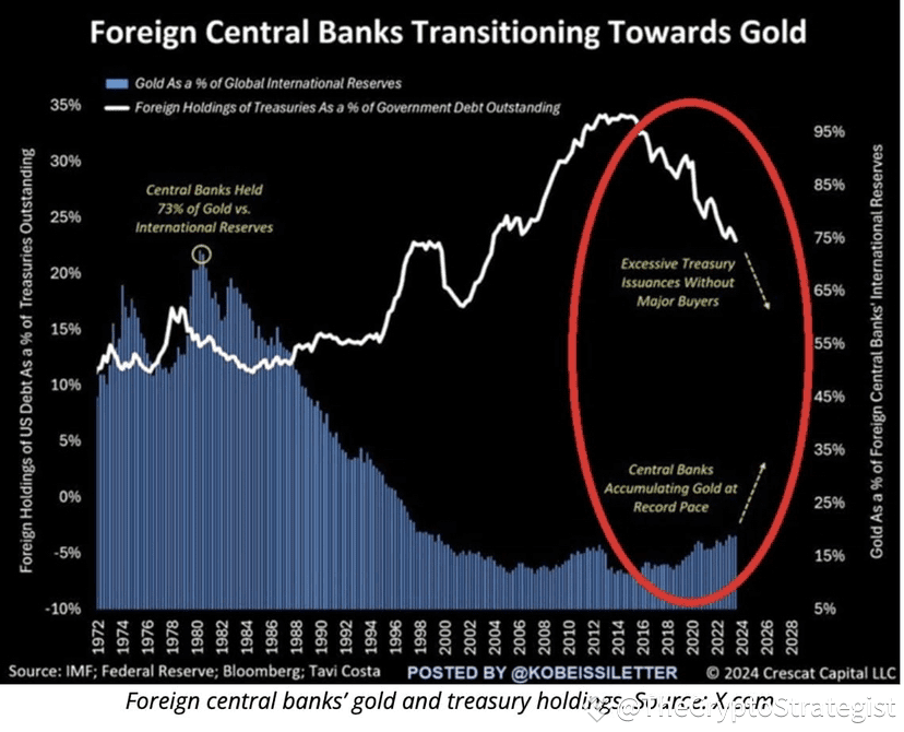 As central banks continue their gold rush and reduce reliance on U.S. debt,