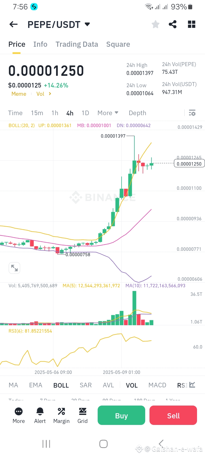 🟢The price of Pepe 🐸($PEPE ) is $0.00001247 today with a 24-hour trading volume of $4,024,921,400.