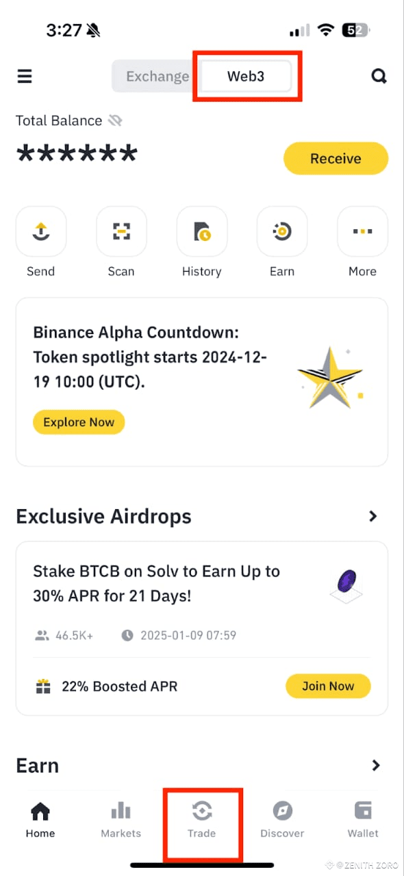 1. Open the Binance Web3 Wallet within the Binance App.