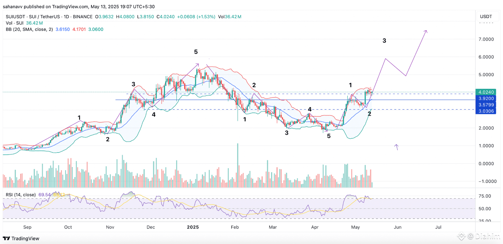 The SUI price is following an Elliott wave pattern, and after a bullish and corrective wave, the token has begun with yet another bullish wave